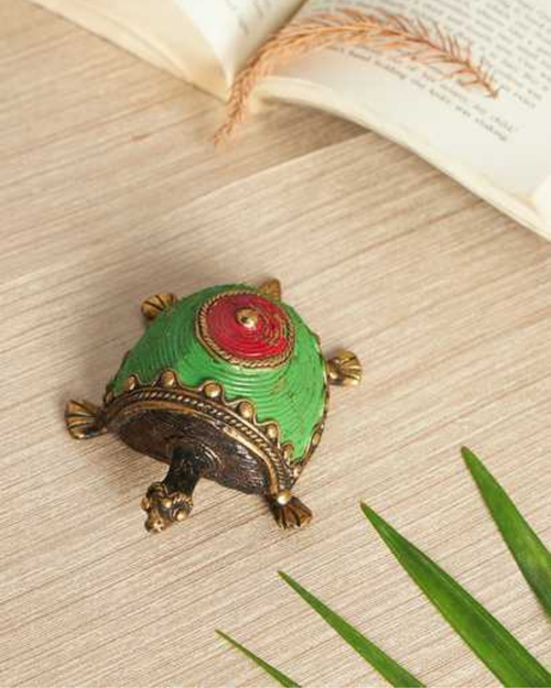 Sthula's Handcrafted Dokra Metal Tribal Decor (Green & Red Finish)