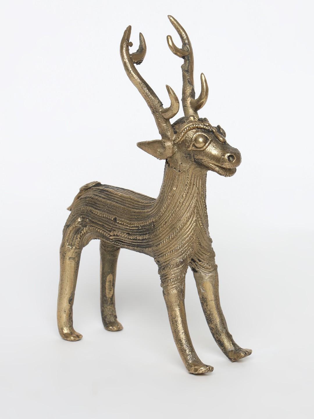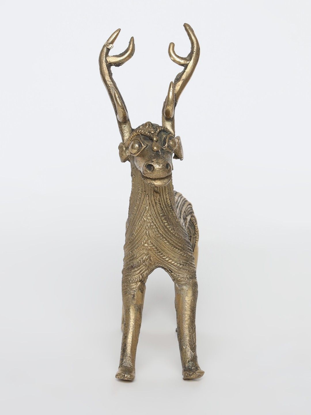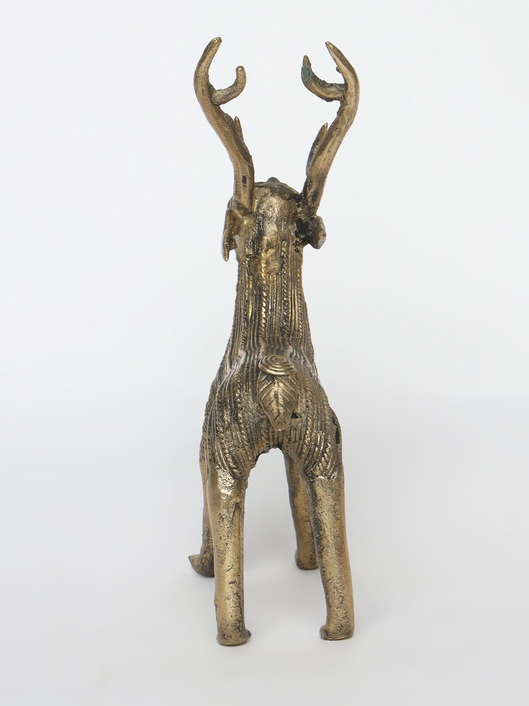 Expertly cast in brass using age-old metal crafting techniques, this deer statue adds a regal charm to any setting — be it your living room, office desk, or showcase décor. Its intricate detailing and antique texture make it a perfect centerpiece or a meaningful gift for art lovers and décor enthusiasts.