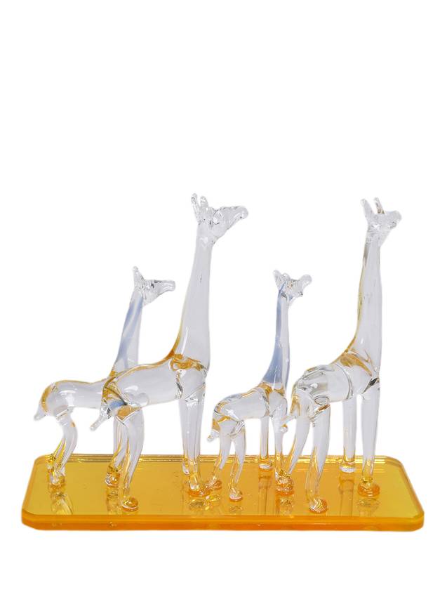 Add a touch of sophistication and charm to your space with this Handcrafted Glass Giraffe Family Showpiece from Sthulas. Expertly crafted from premium-quality glass, this stunning art piece features a graceful family of giraffes standing elegantly on a golden-yellow glass base.