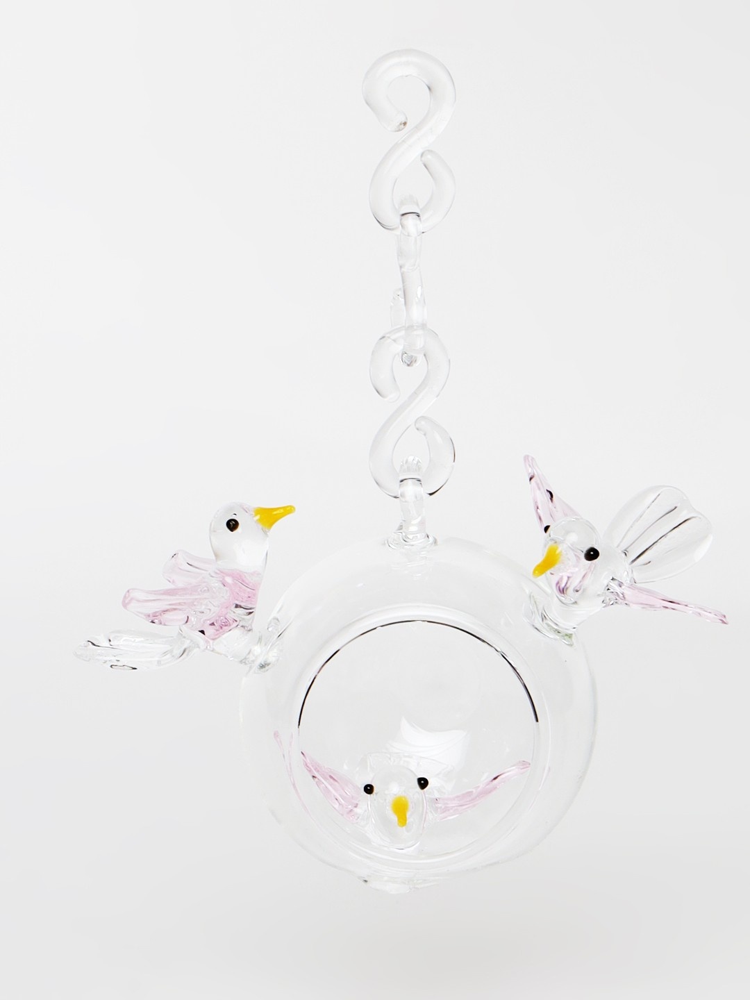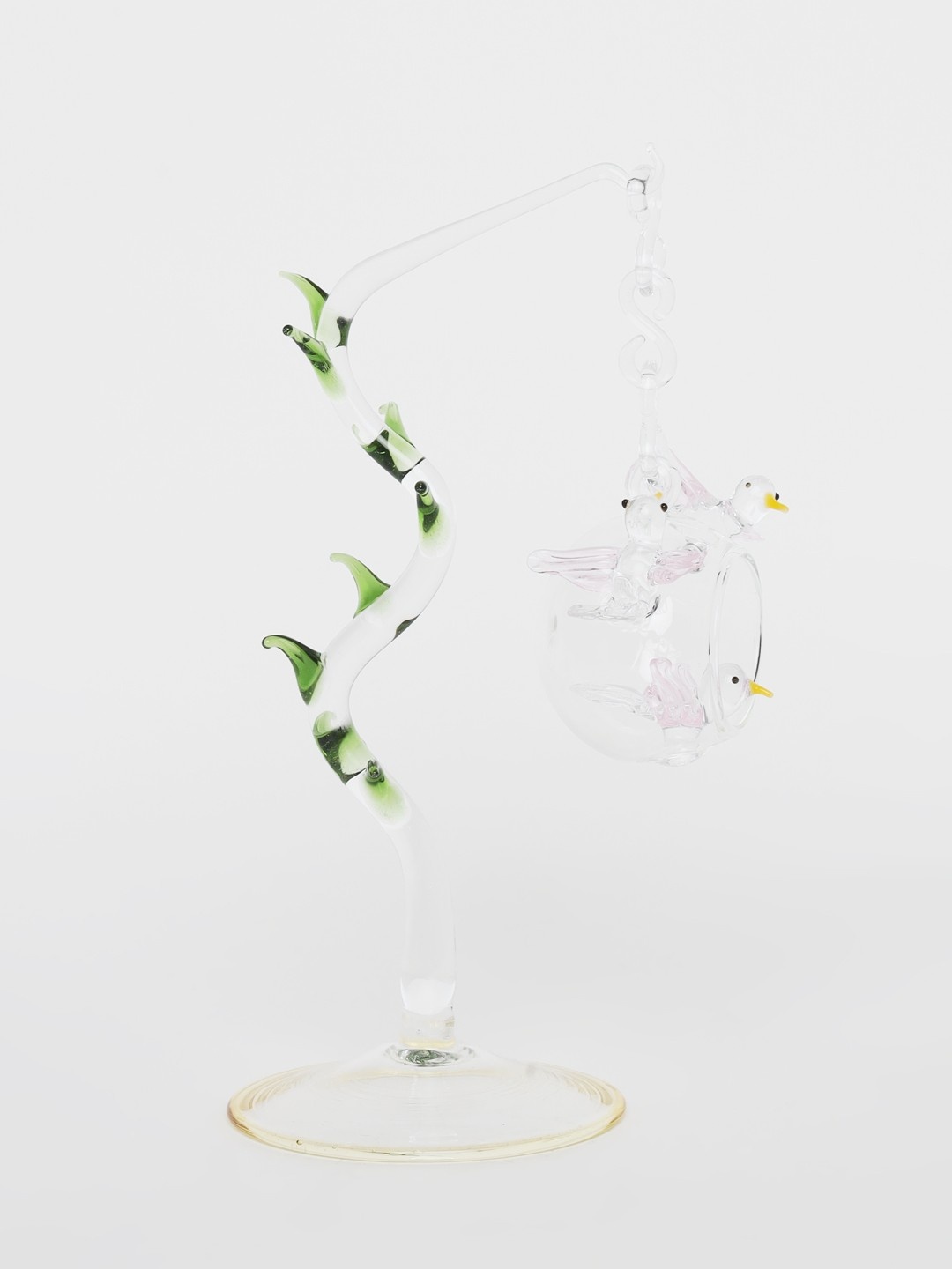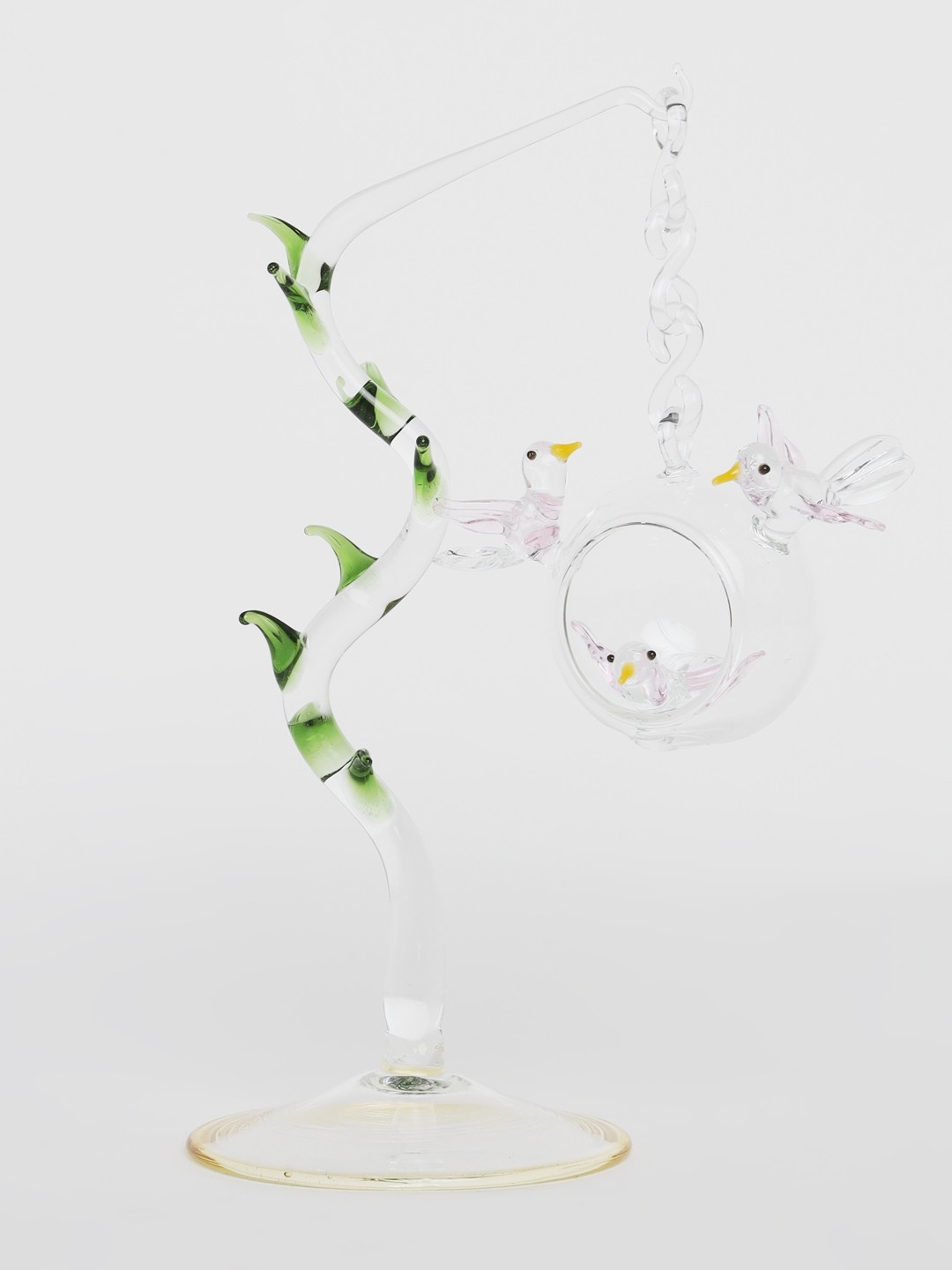 Design: Hanging bird inside glass globe with artistic stand