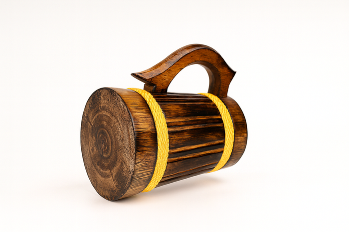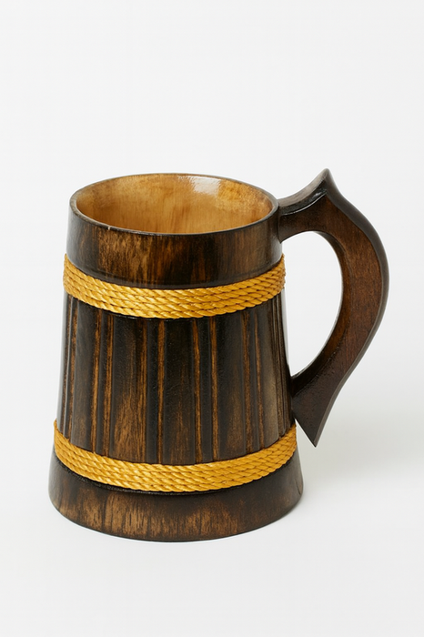 Crafted with a textured wooden finish and wrapped with decorative rope detailing, the mug showcases traditional craftsmanship and modern durability. It’s lightweight, sturdy, and ideal for home bars, cafés, restaurants, themed parties, and unique gifting.