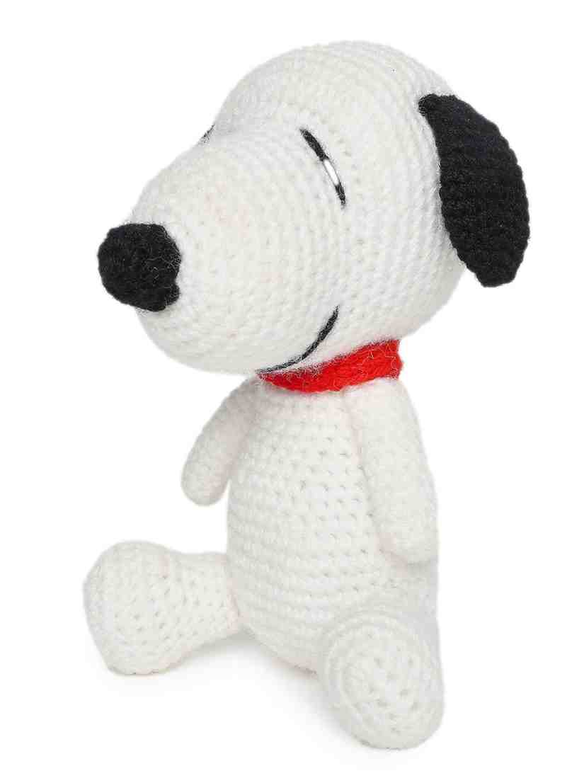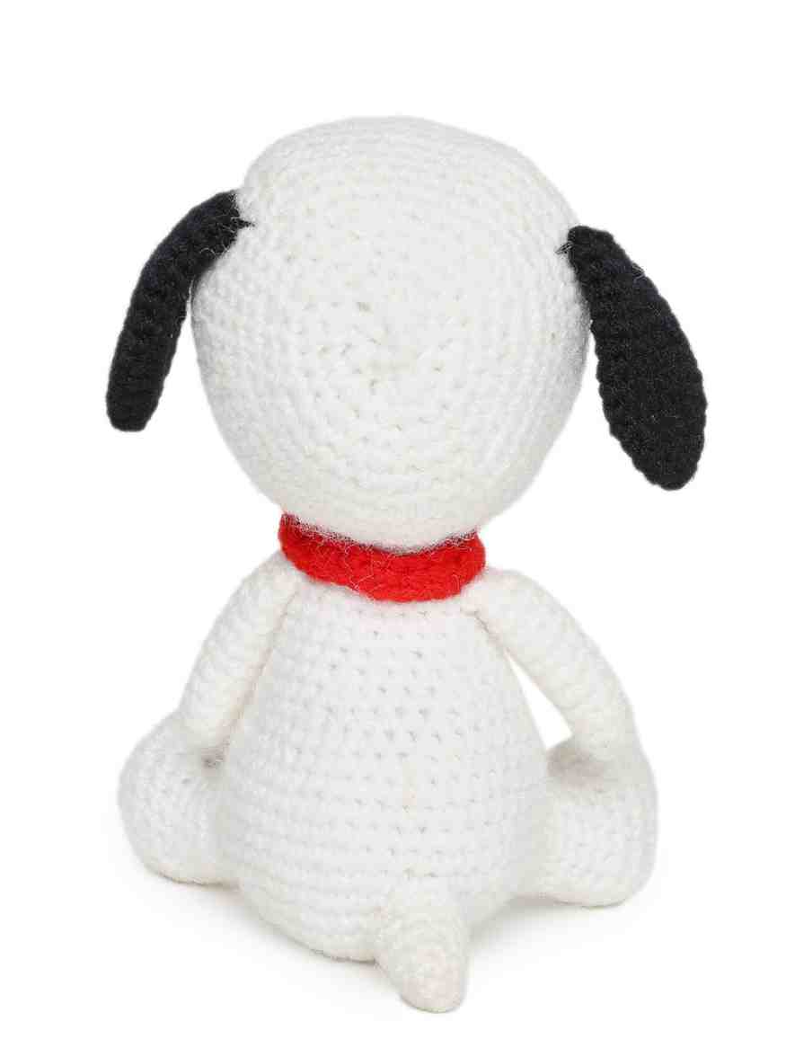 Bring home the charm of handcrafted love with this Handmade Crochet Dog Soft Toy from Sthulas. Beautifully knitted with soft, high-quality yarn, this cute white and black dog plush is designed to be both child-safe and eco-friendly.