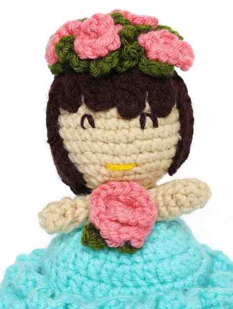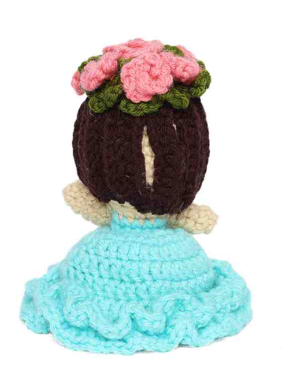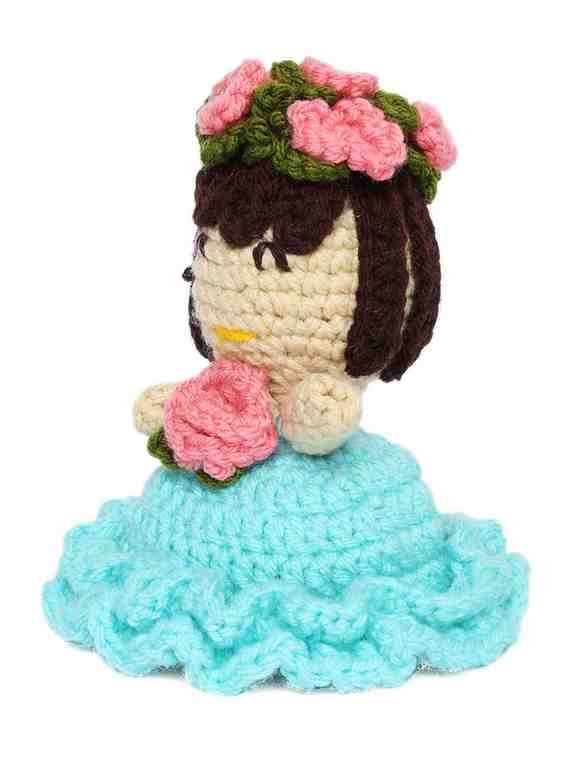 Add a touch of charm and craftsmanship to your collection with this Handmade Crochet Doll in Blue Dress by Sthulas. Beautifully handcrafted using soft, high-quality yarn, this cute doll features a lovely flower crown and bouquet, making it a perfect gift or décor piece.