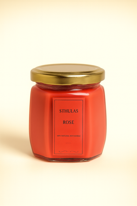 Fill your space with love and luxury using the Sthulas Red Rose Scented Candle. Hand-poured with 100% natural soy wax, this candle releases a rich and romantic floral rose fragrance that evokes the timeless beauty of freshly bloomed roses.