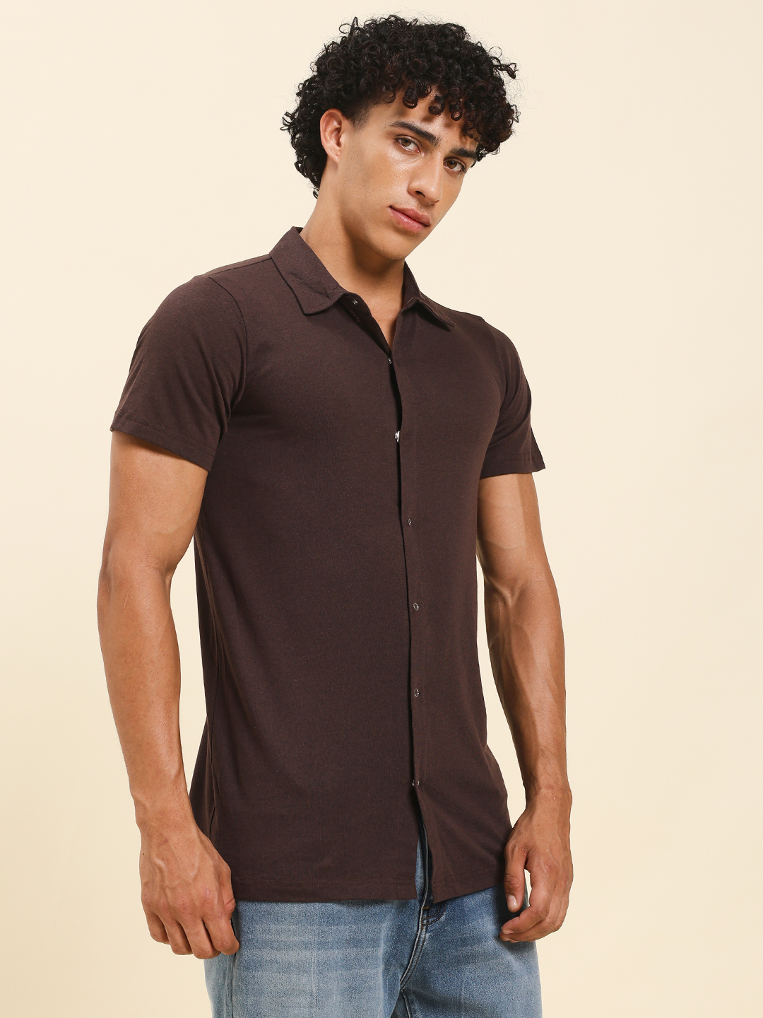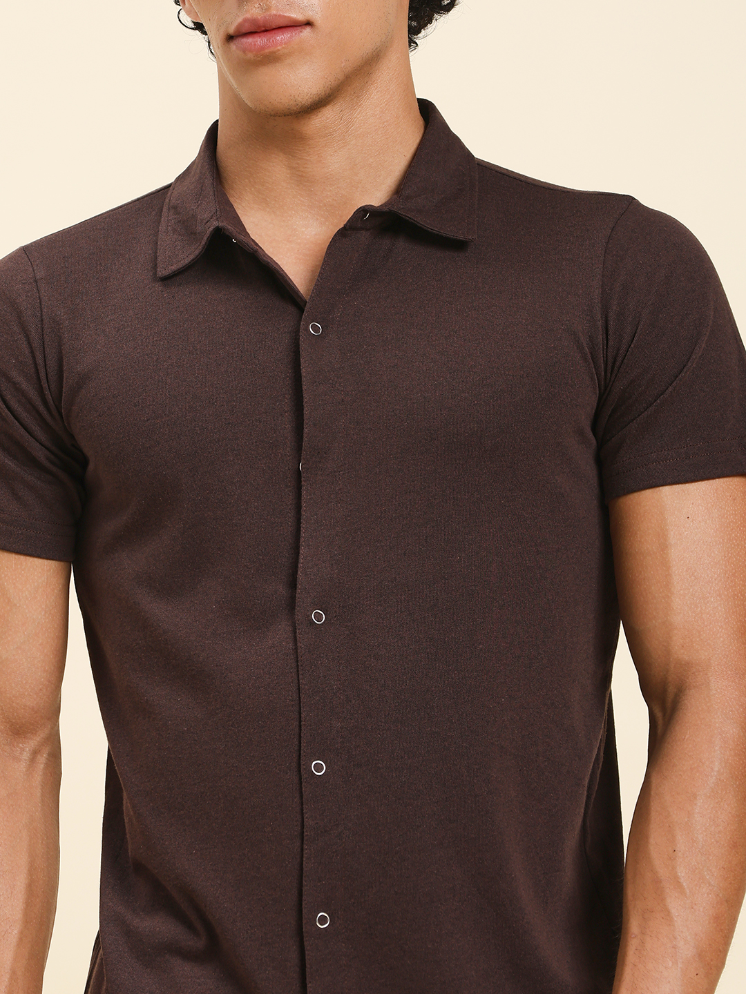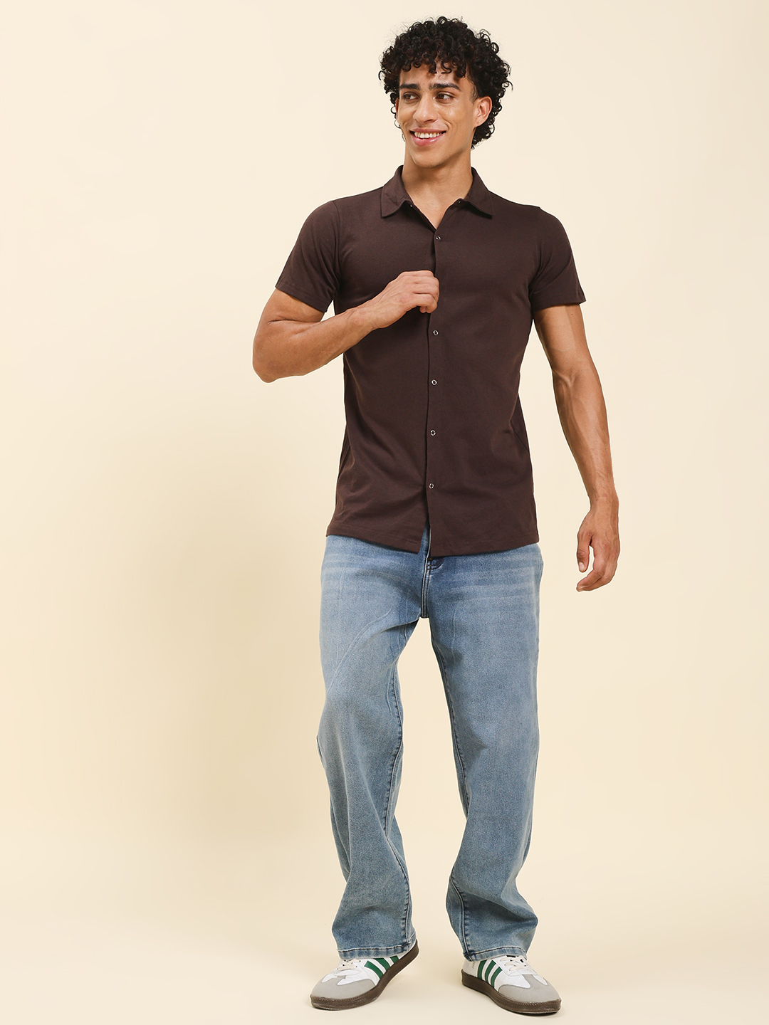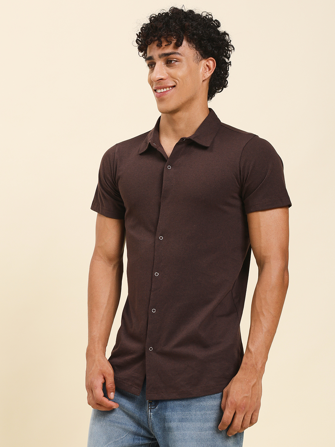Step into everyday style with this Men’s Brown Button-Down Cotton T-Shirt from Sthulas. Designed for comfort and versatility, this collared T-shirt offers the perfect mix of casual and polished fashion.