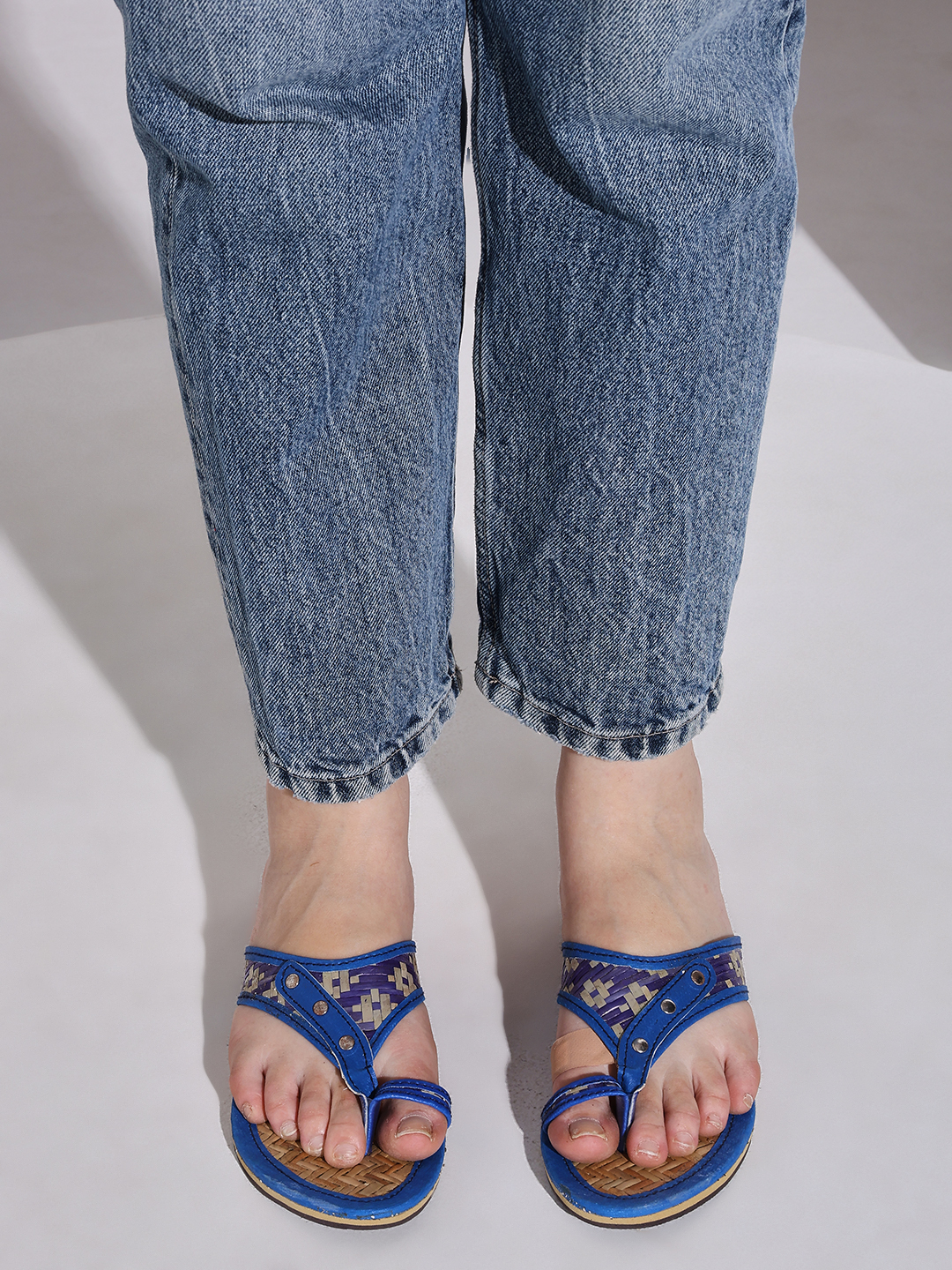 Step into elegance with these Handcrafted Blue Leather Kolhapuri Sandals, designed to blend traditional artistry with a contemporary edge. Crafted by skilled Indian artisans, these sandals feature intricate woven detailing and metal stud embellishments, giving them a unique ethnic yet modern look.