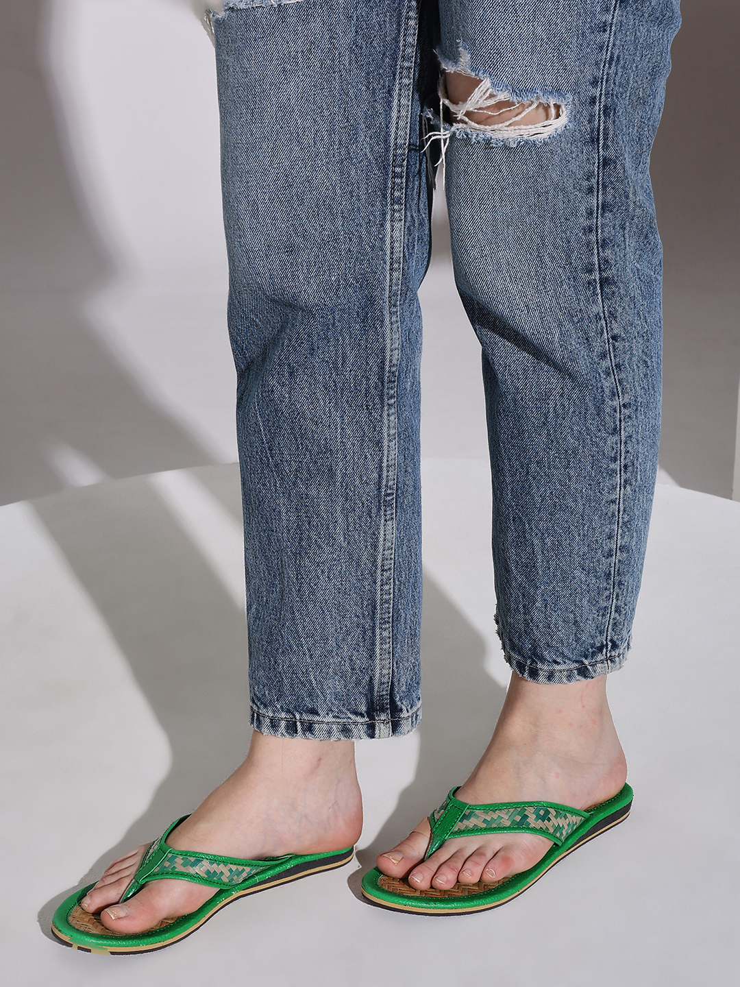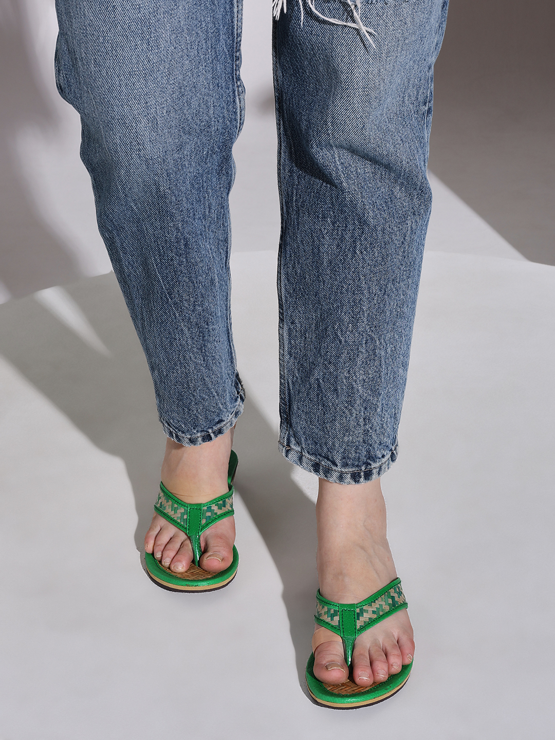 Brighten your steps with these Handcrafted Green Leather Kolhapuri Sandals, a perfect blend of traditional design and modern comfort. Made by skilled Indian artisans, these sandals feature woven leather detailing and a vibrant green finish that adds a refreshing pop of color to your outfit.