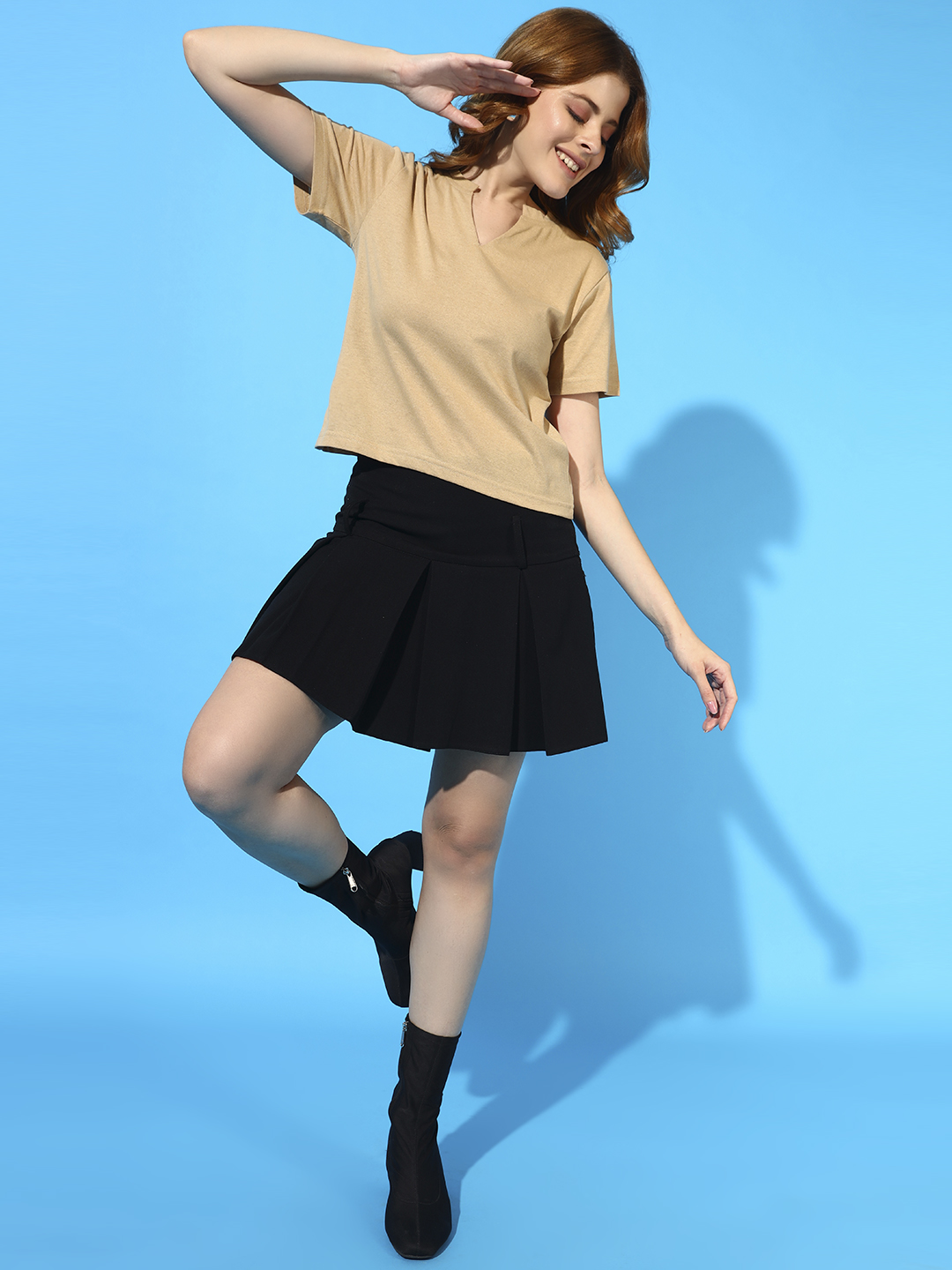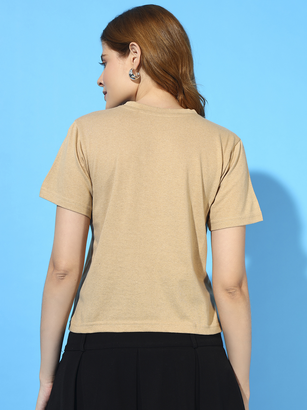 Upgrade your everyday style with this Sthulas Beige Notch Neck Top, a wardrobe essential for modern women.