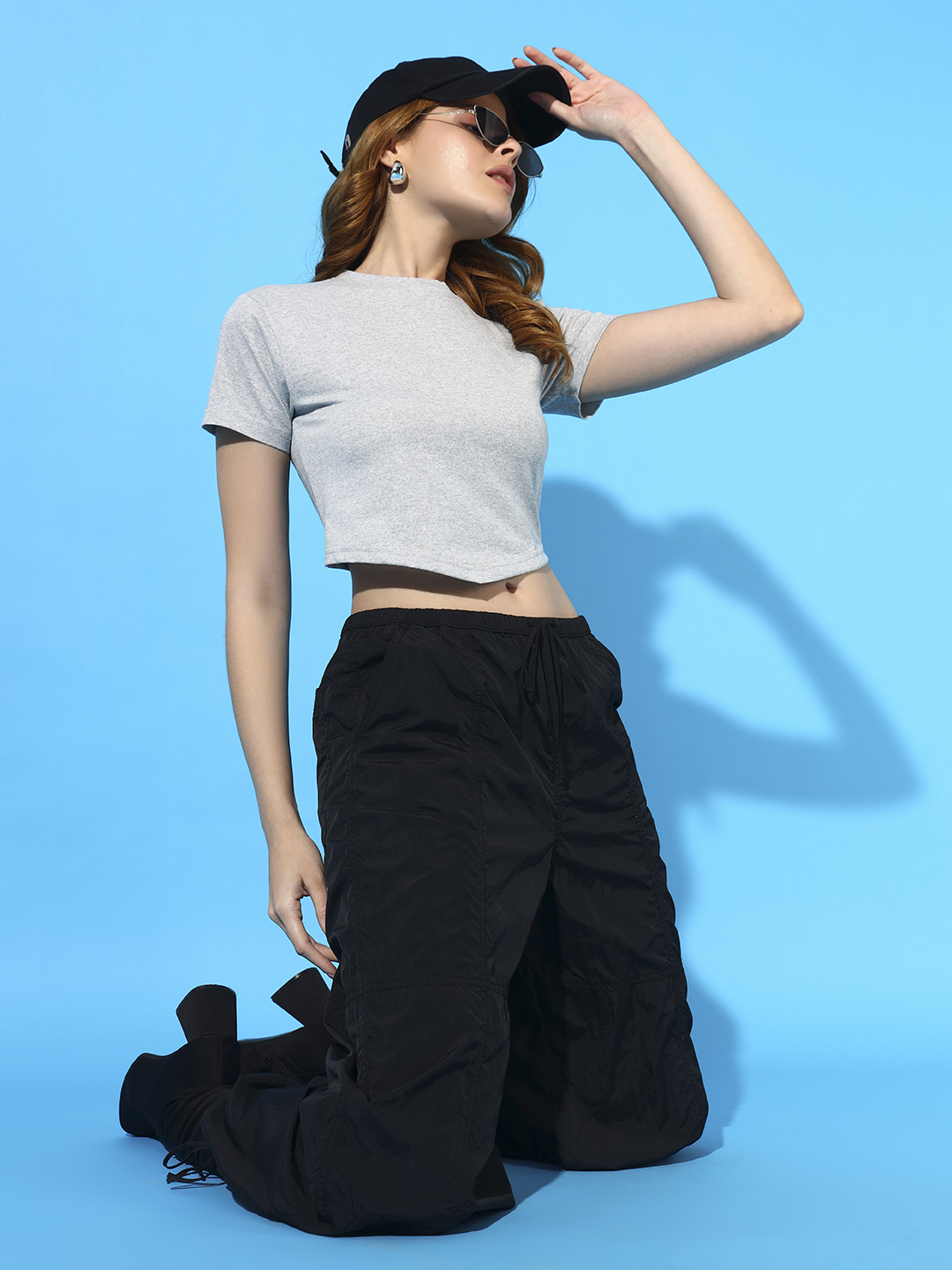 This Sthulas Heather Grey Crop Tee is the perfect mix of comfort and fashion, making it a must-have for every modern wardrobe.