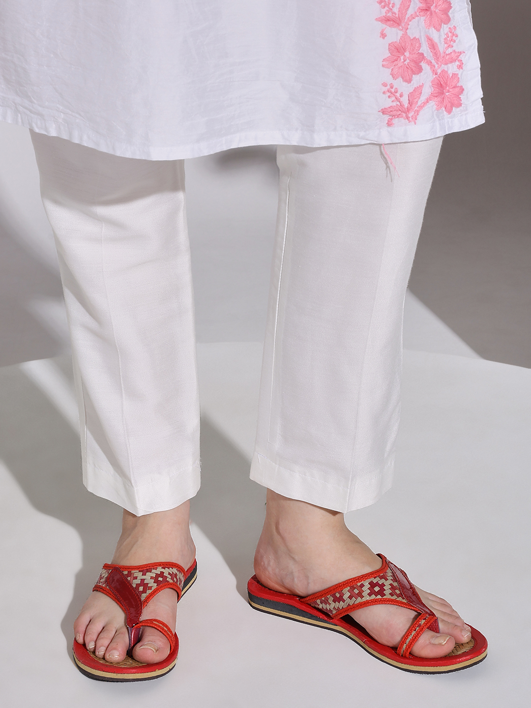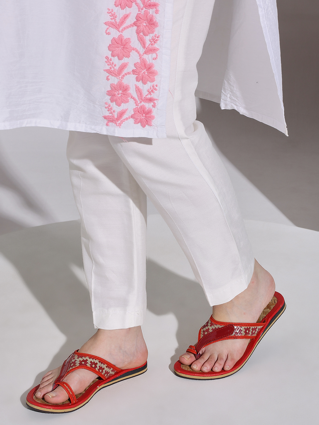 Bring home these Sthulas red ethnic flat slippers for women, a perfect combination of traditional charm and modern comfort.