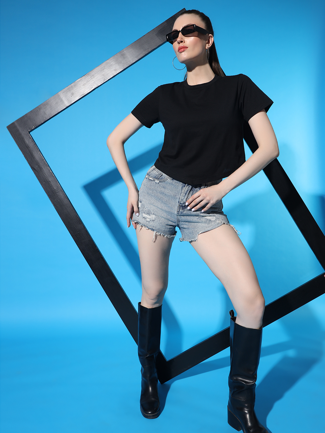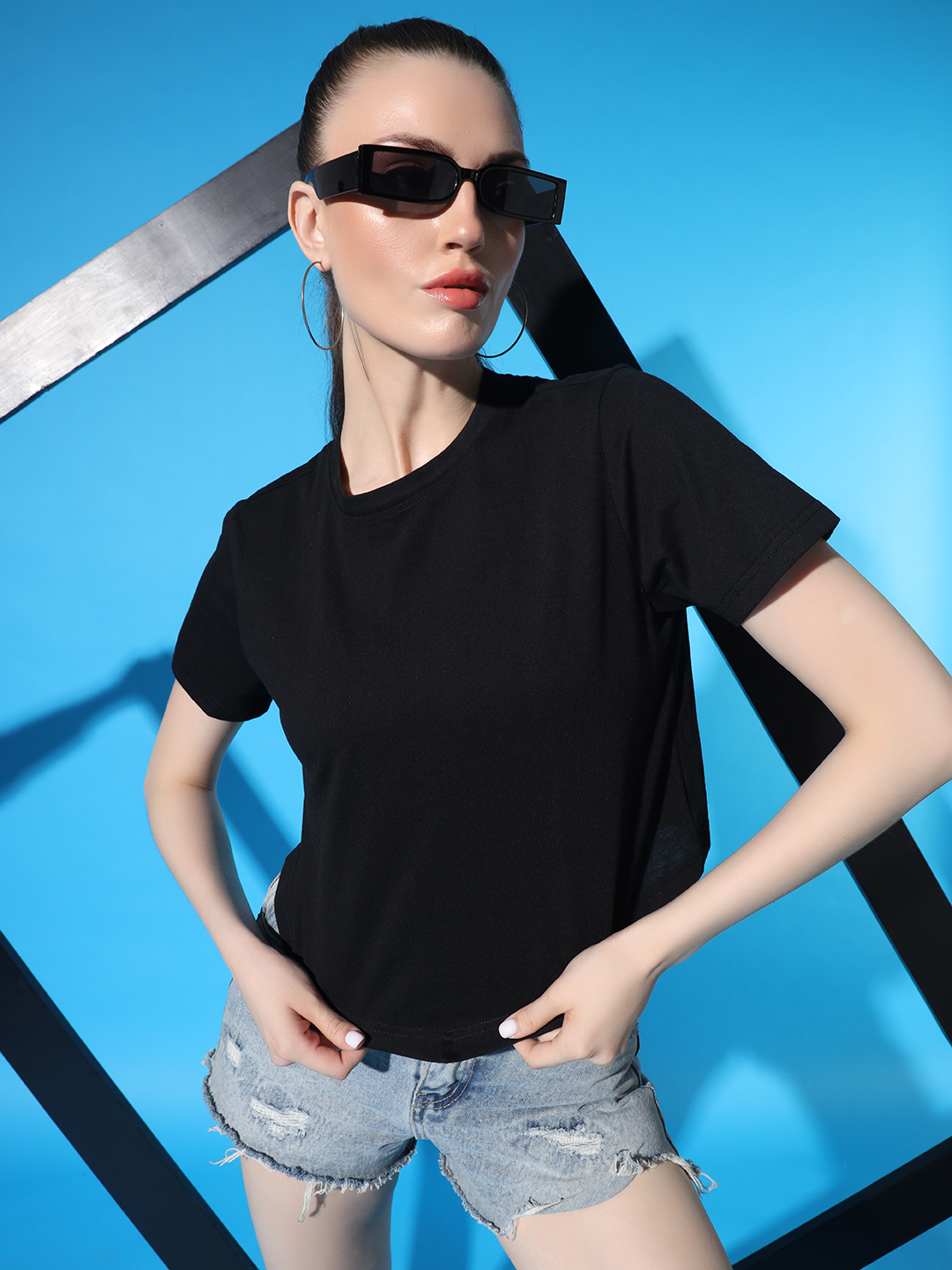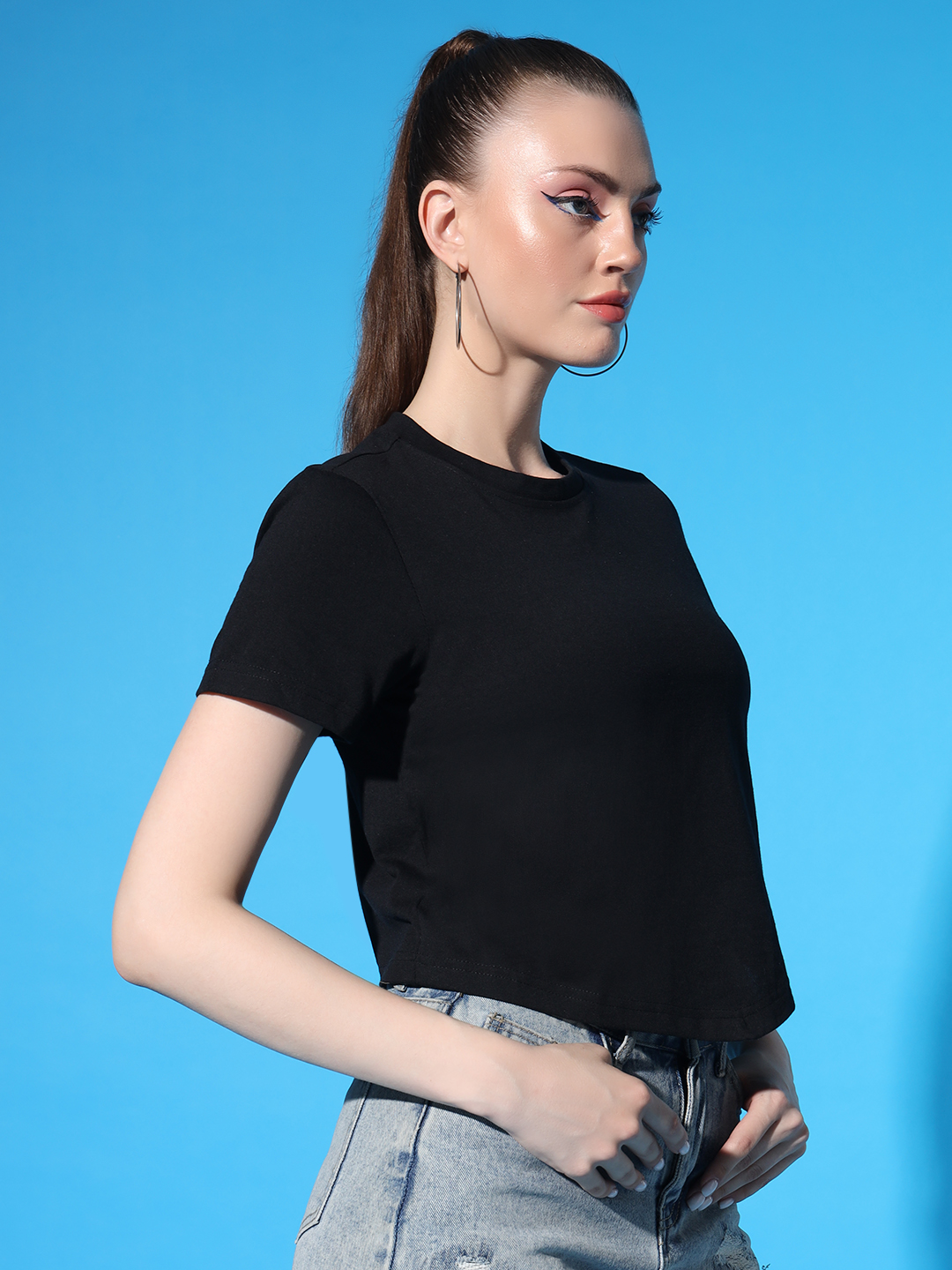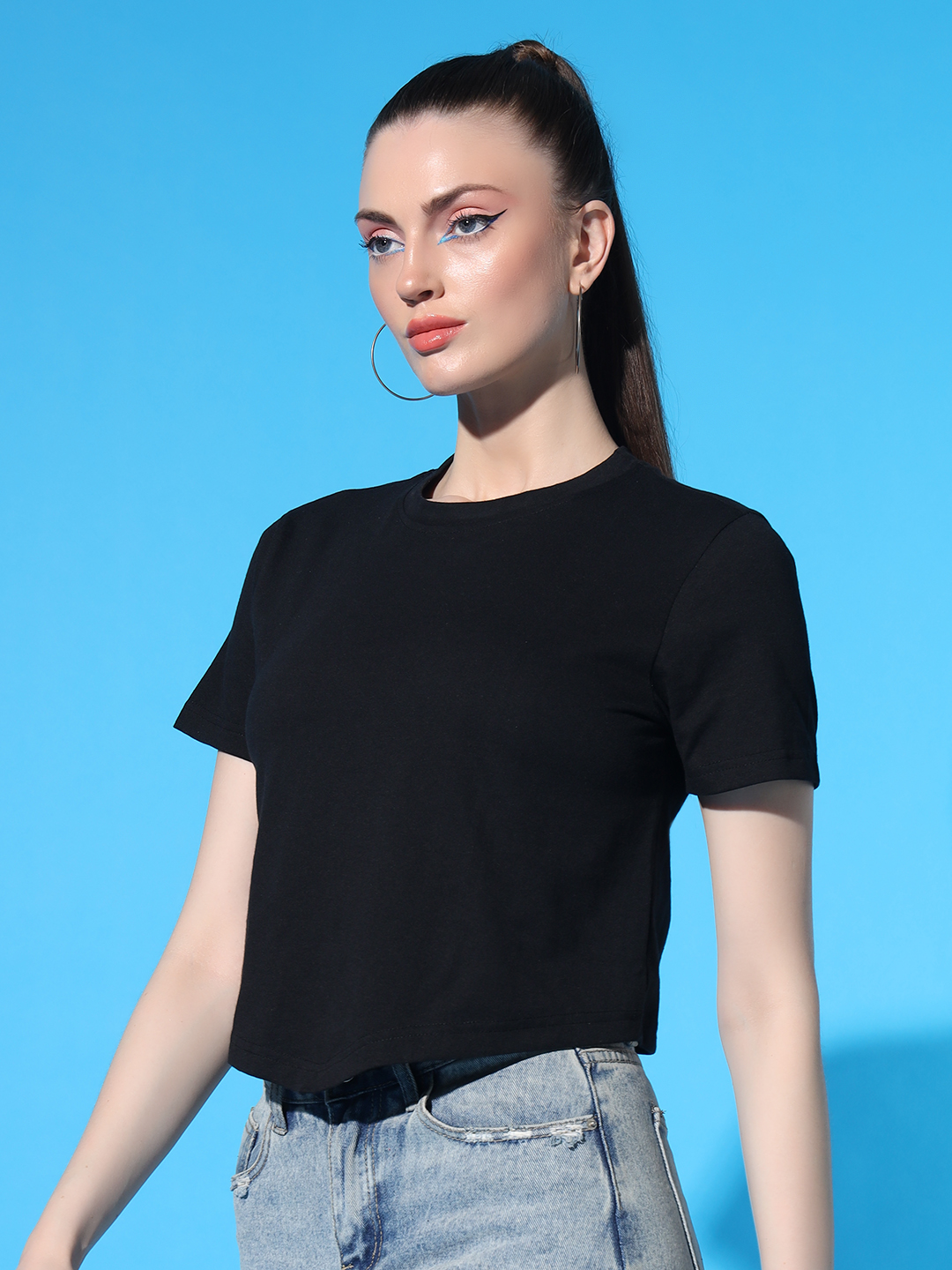 The classic round neckline, short sleeves, and trendy cropped length make it a must-have wardrobe essential. Perfect for college, outings, gym layering, casual days, and travel, this versatile piece pairs amazingly well with jeans, high-waist pants, skirts, joggers, or shorts.