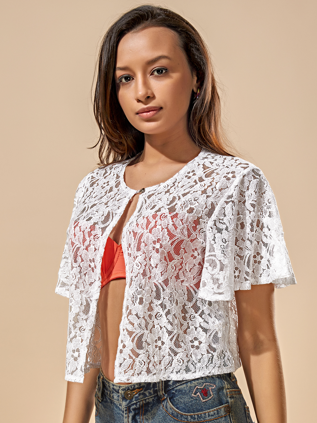 Add a touch of elegance to your outfit with this Women’s White Floral Lace Shrug from Sthulas. Crafted from soft, breathable lace fabric, this lightweight overlay offers effortless style and versatility — perfect for layering over camisoles, crop tops, or beachwear.