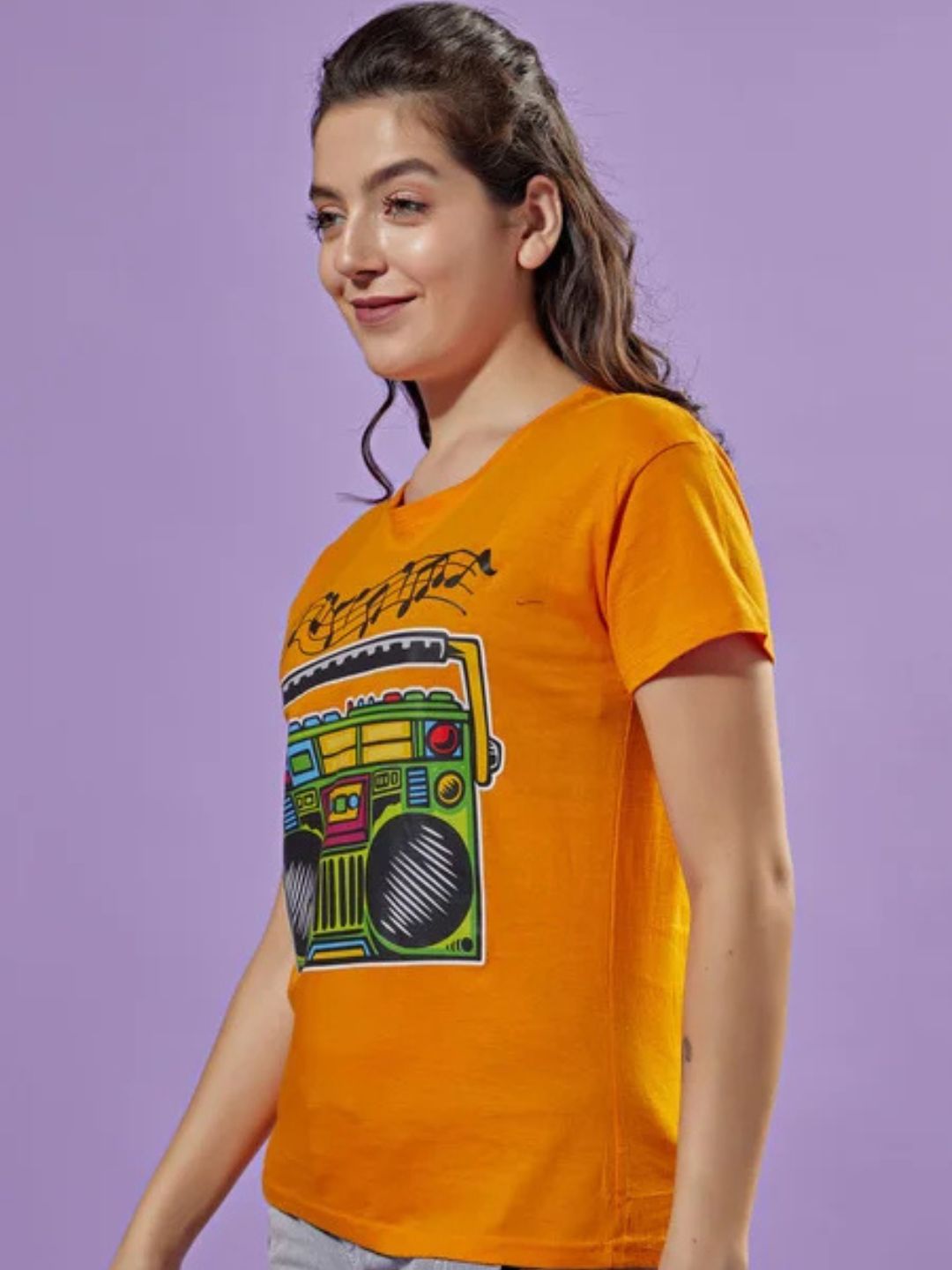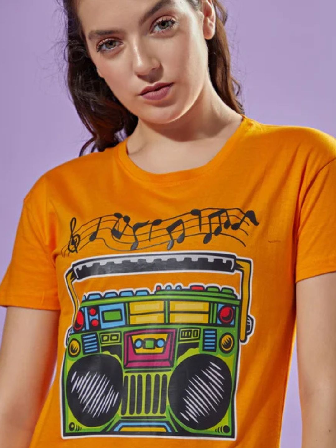 The yellow vibrant radio printed women's top is a playful and eye-catching garment that perfectly blends retro charm with modern fashion. Crafted from soft, breathable cotton fabric, this top ensures comfort throughout the day, making it an ideal choice for casual outings, weekend gatherings, or even lounging at home. The bright yellow hue adds a cheerful and lively vibe, instantly lifting the mood and making it a standout piece in any wardrobe.