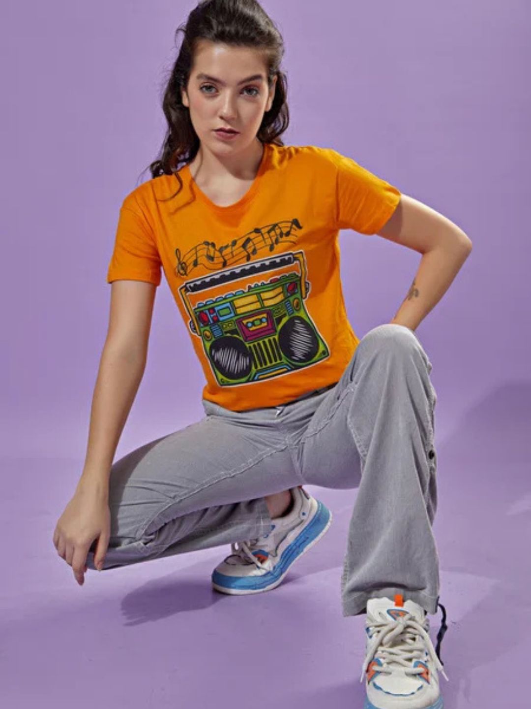 The cotton fabric not only ensures durability but also maintains its vibrant color and print even after multiple washes. This top is perfect for those who love to express their personality through their wardrobe, offering a bold and stylish option that doesn’t compromise on comfort. Whether worn on its own or layered with a jacket, this yellow vibrant radio printed top is sure to become a favorite go-to piece.