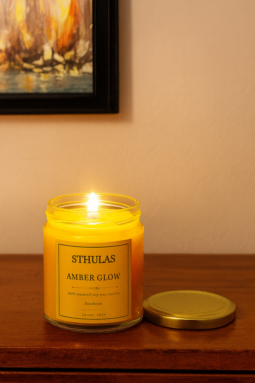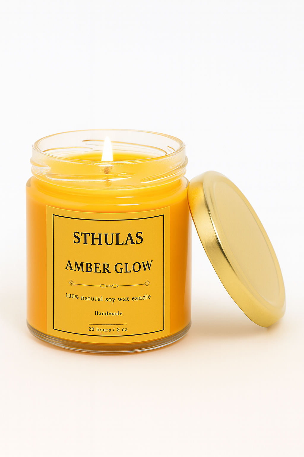 Amber Glow Scented Candle | Hand-Poured Soy Wax Candle for Warm, Cozy Ambience – Sthulas