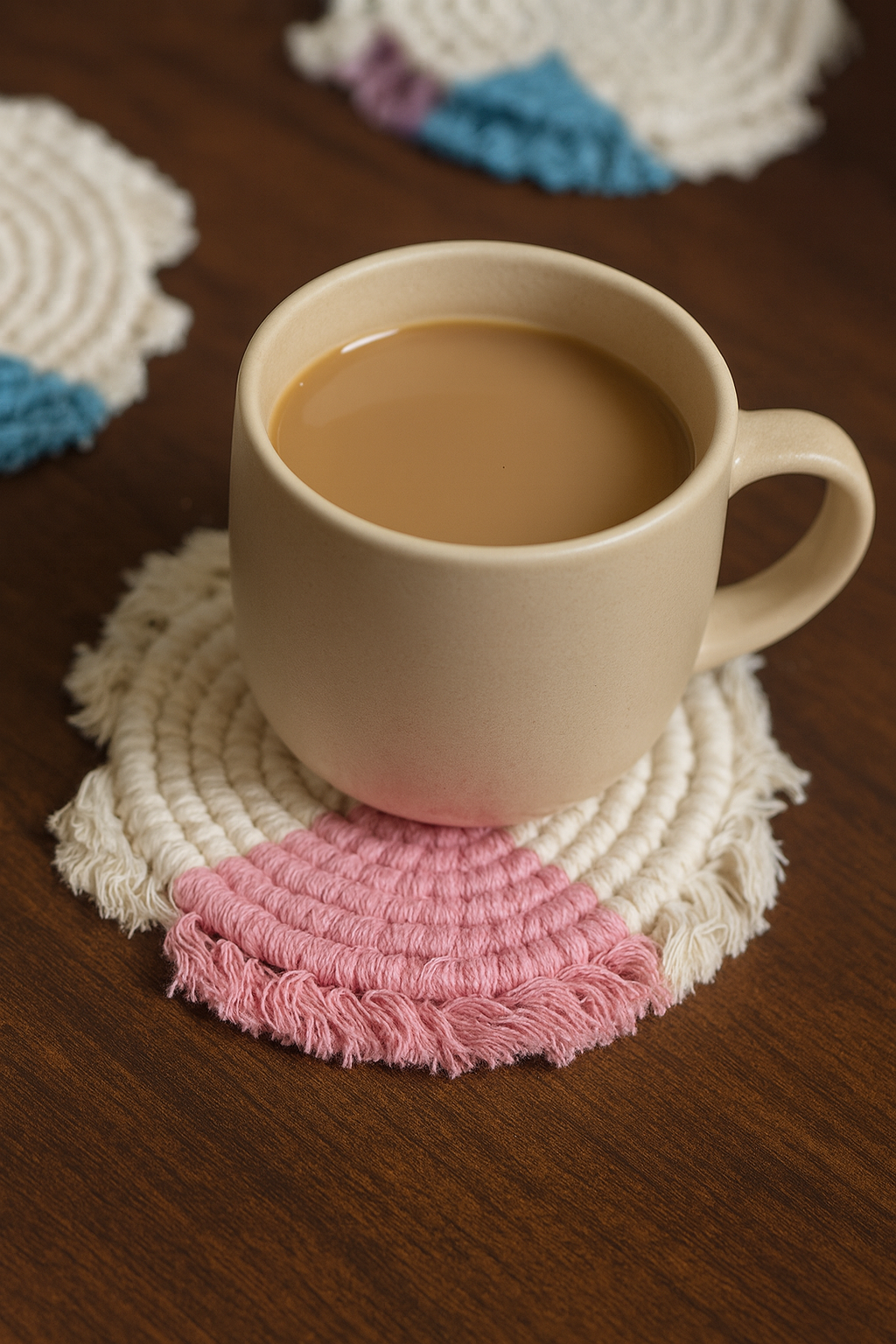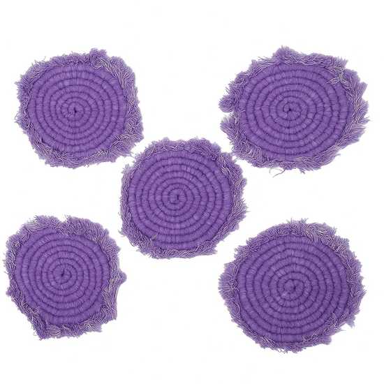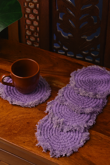 Handmade Purple Macrame Cotton Coasters Set | Boho Table & Home Décor