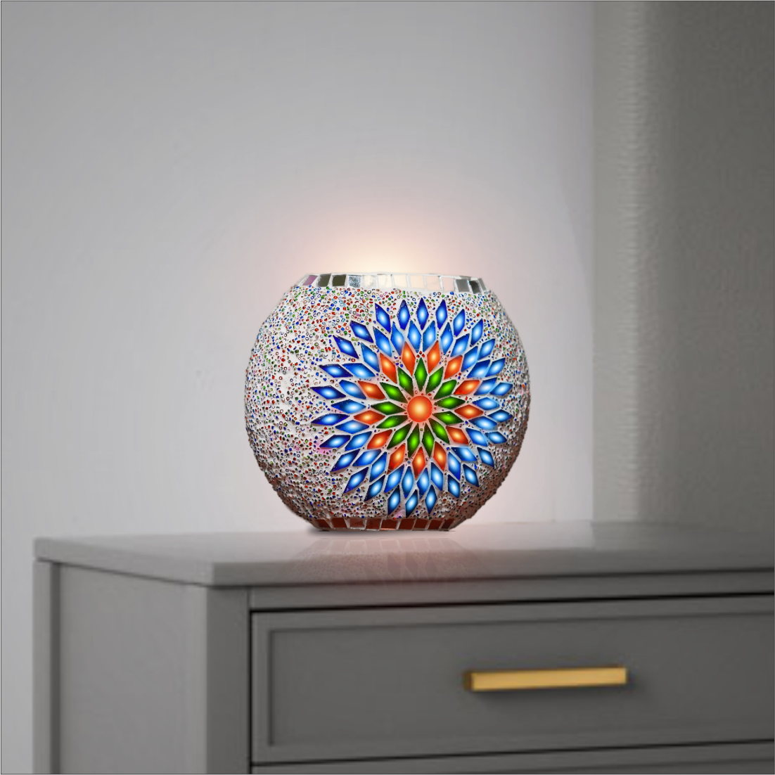Handcrafted Mosaic Glass Electric Lamp – Multicolor Table Lamp for Home Décor by Sthulas