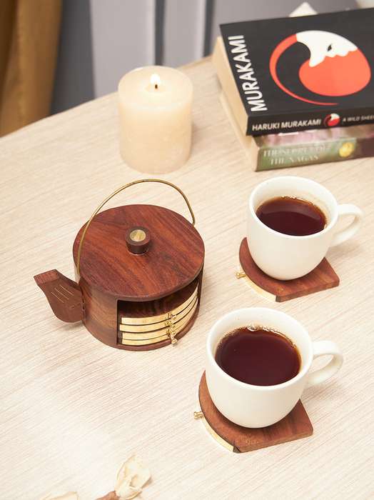 Handcrafted Wooden Hut-Style Coaster Set | Antique Finish Table Décor by Sthulas
