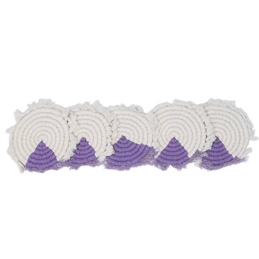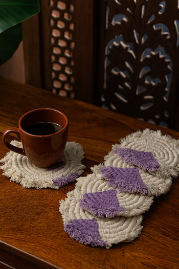 Handmade Purple Macrame Cotton Coasters Set | Boho Table & Home Décor