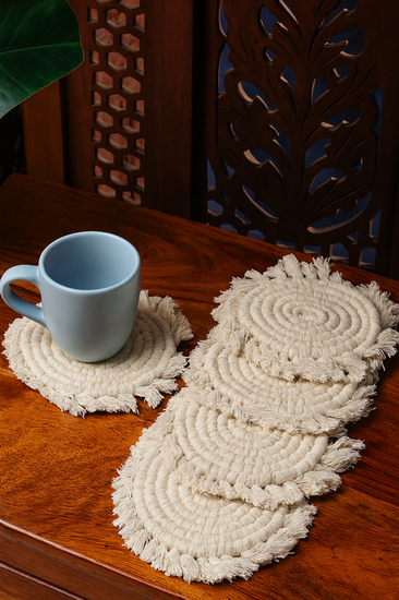 Handmade Macrame Cotton Coasters Set | Eco-Friendly Boho Table Décor