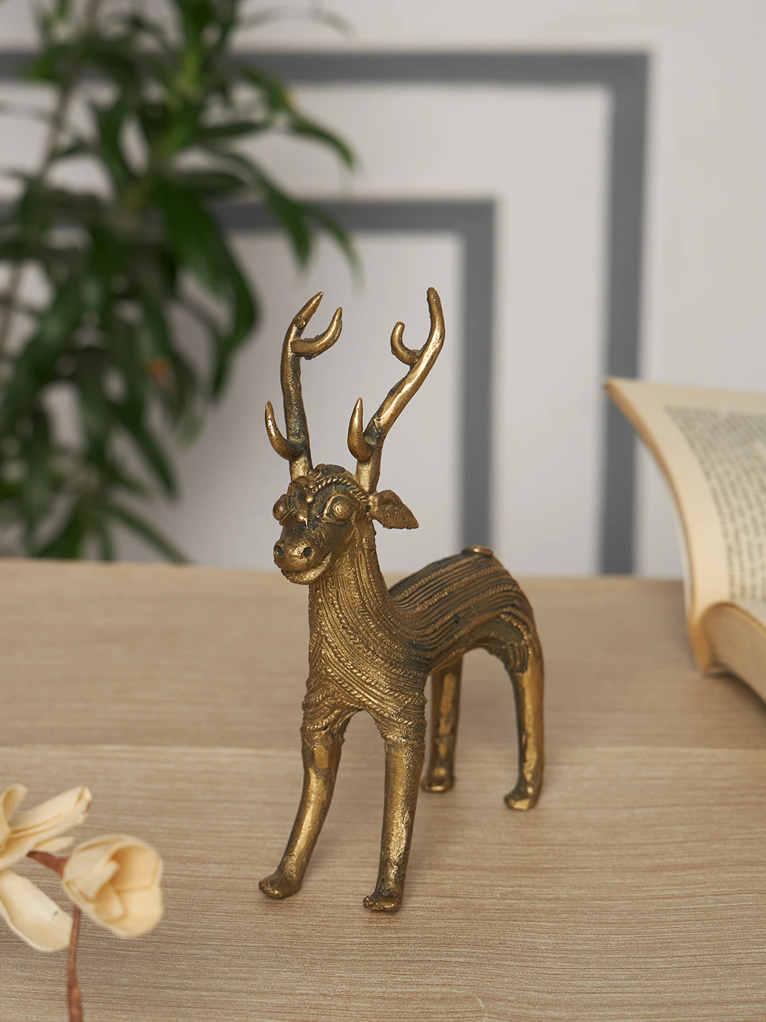 Handcrafted dokra Deer Figurine | Antique Finish Metal Reindeer Sculpture for Home Décor
