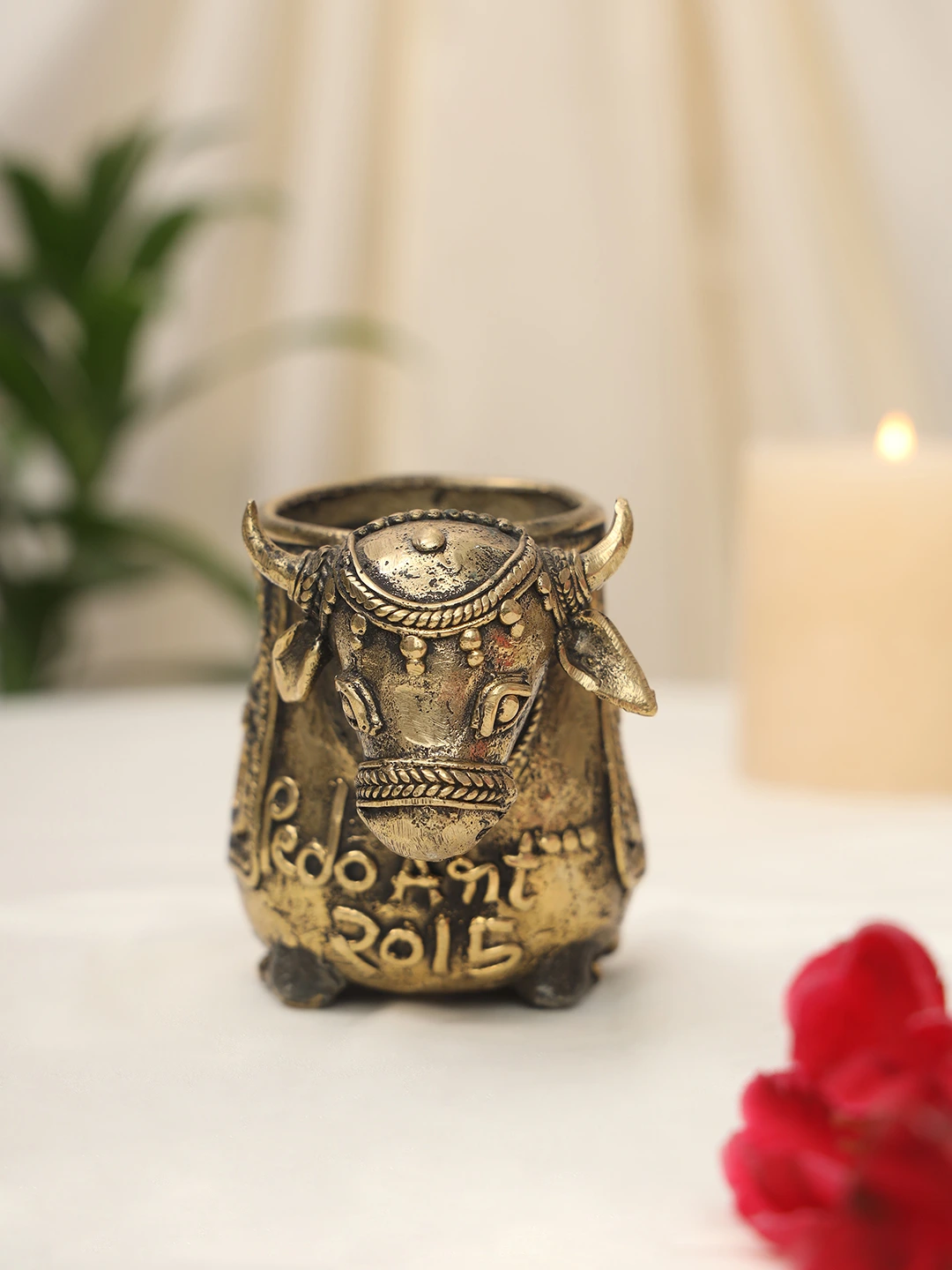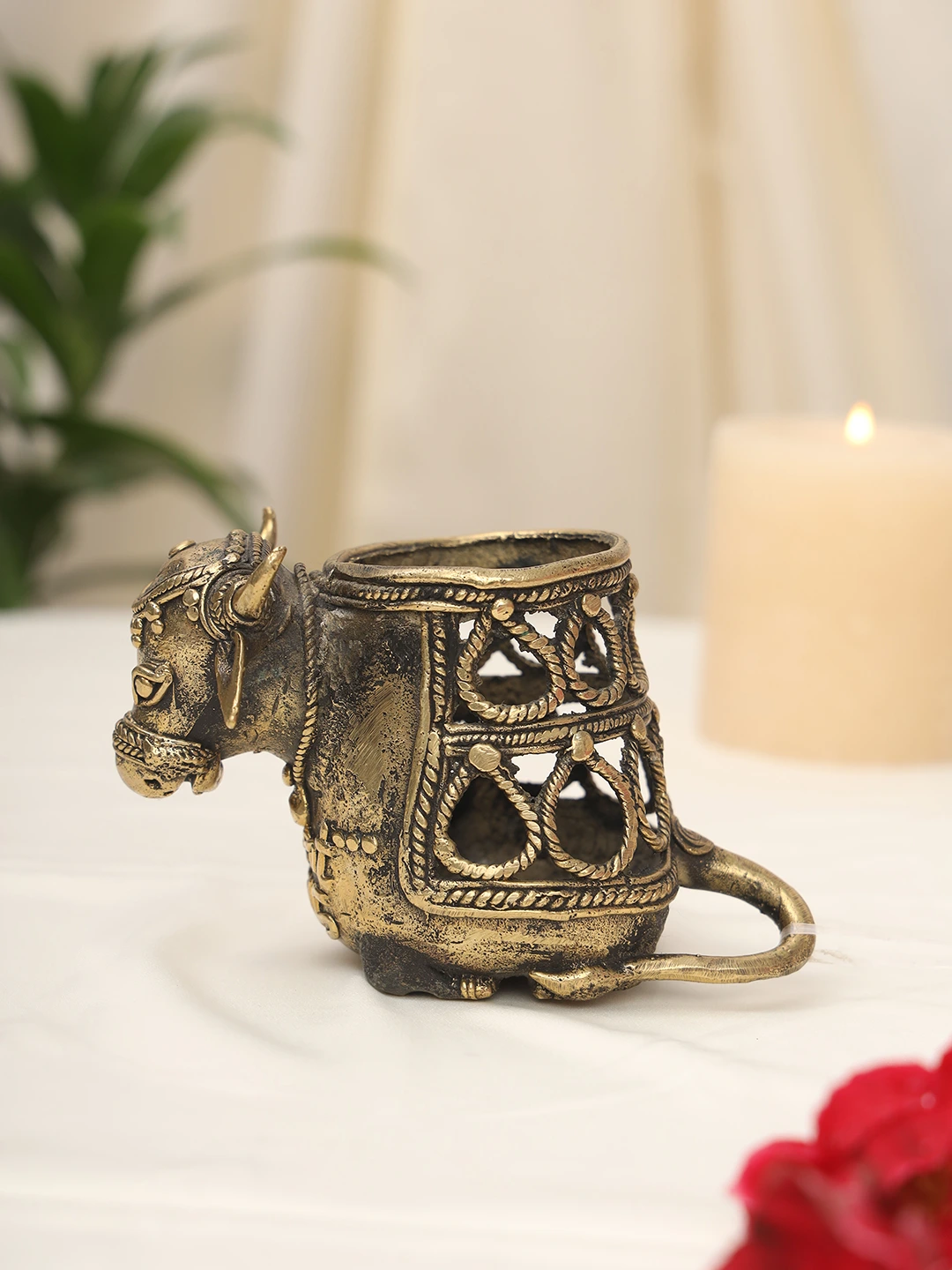 Handcrafted dokra Nandi Tealight Holder | Antique Finish Bull Candle Holder for Home Décor