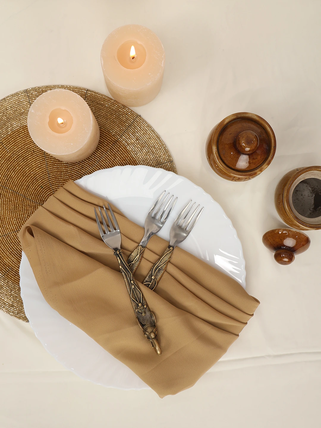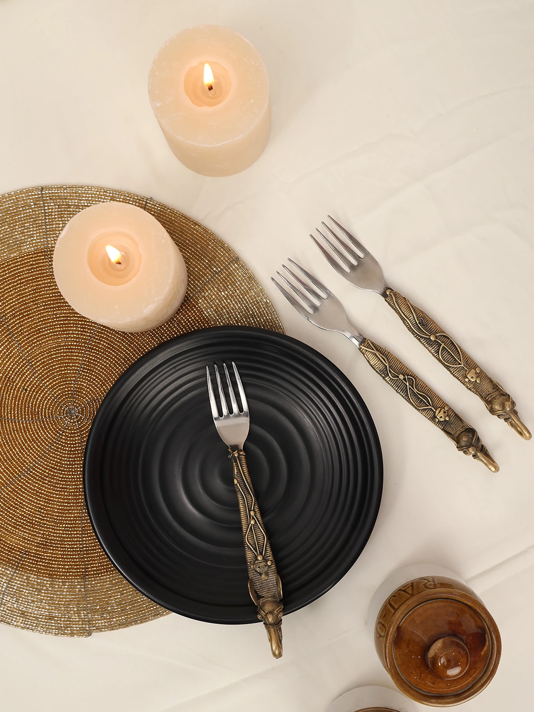 Handcrafted Brass Finish Designer Fork Set | Tribal Art dokra Cutlery for Dining & Gifting – Set of 3