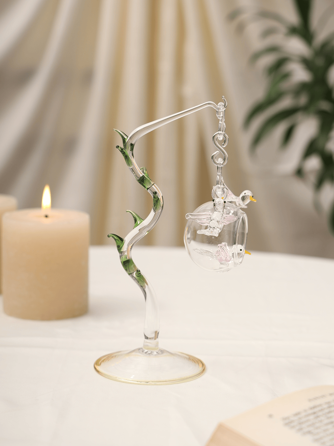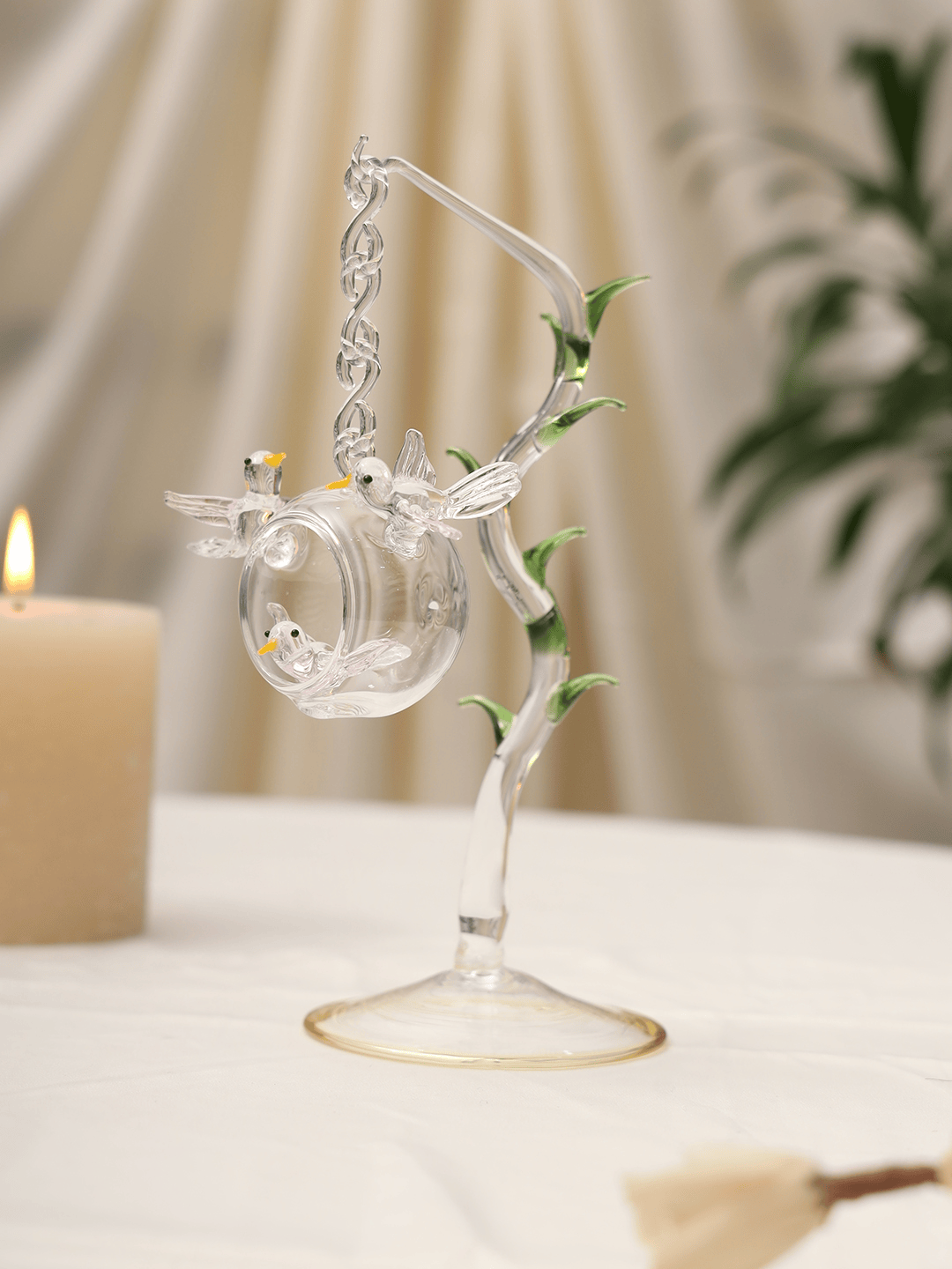 Handcrafted Hanging Glass Bird Showpiece with Stand | Elegant Home Décor Crystal Art