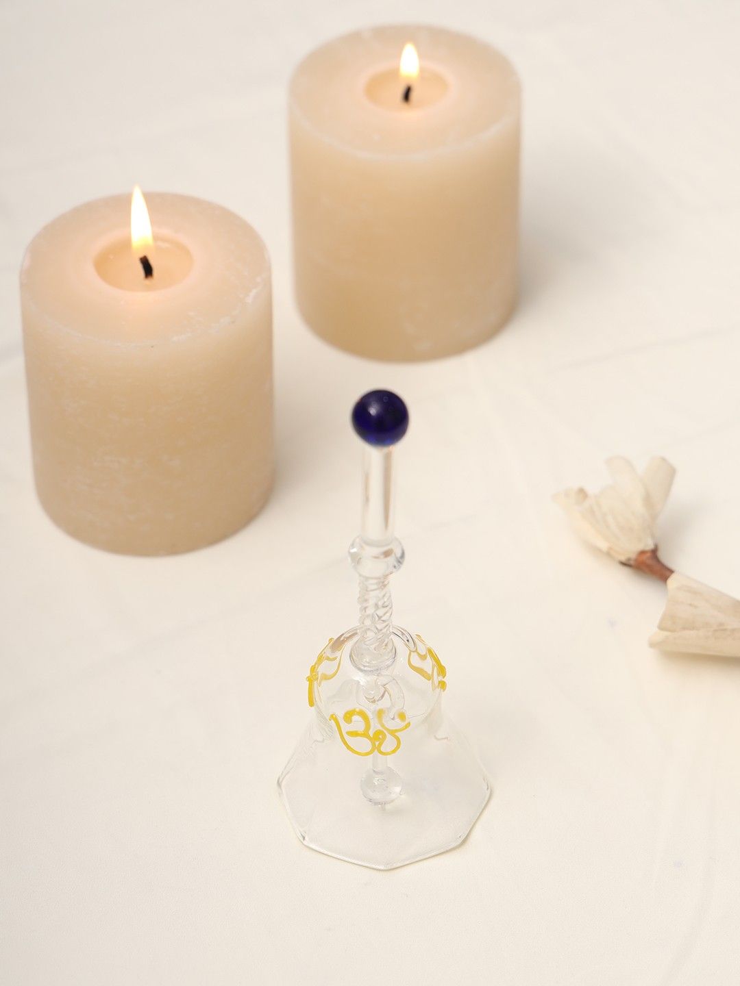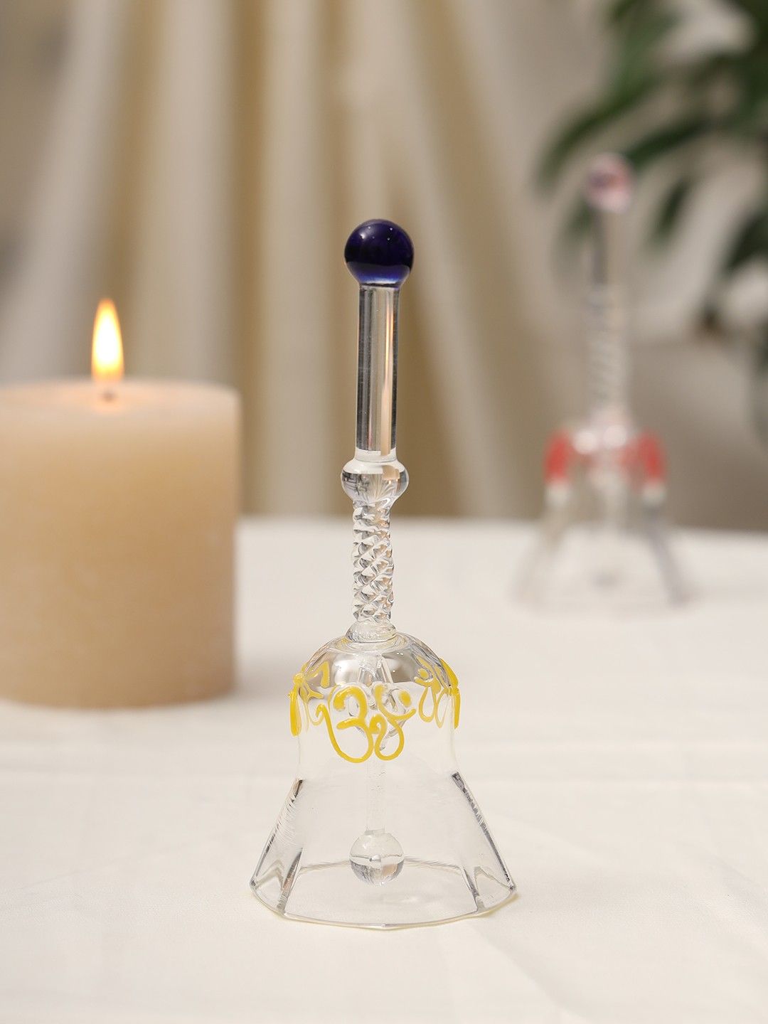 Handcrafted Glass Bell with yellow Floral Design | Elegant Crystal Bell for Puja & Home Décor