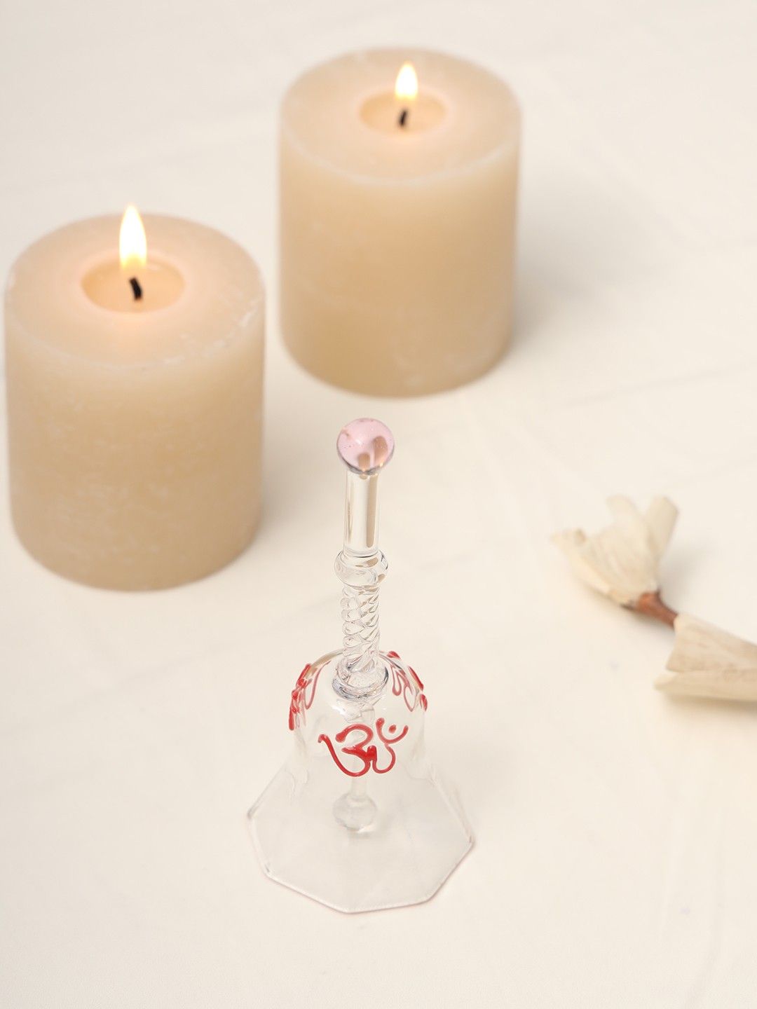 Handcrafted Glass Bell with Red Floral Design | Elegant Crystal Bell for Puja & Home Décor