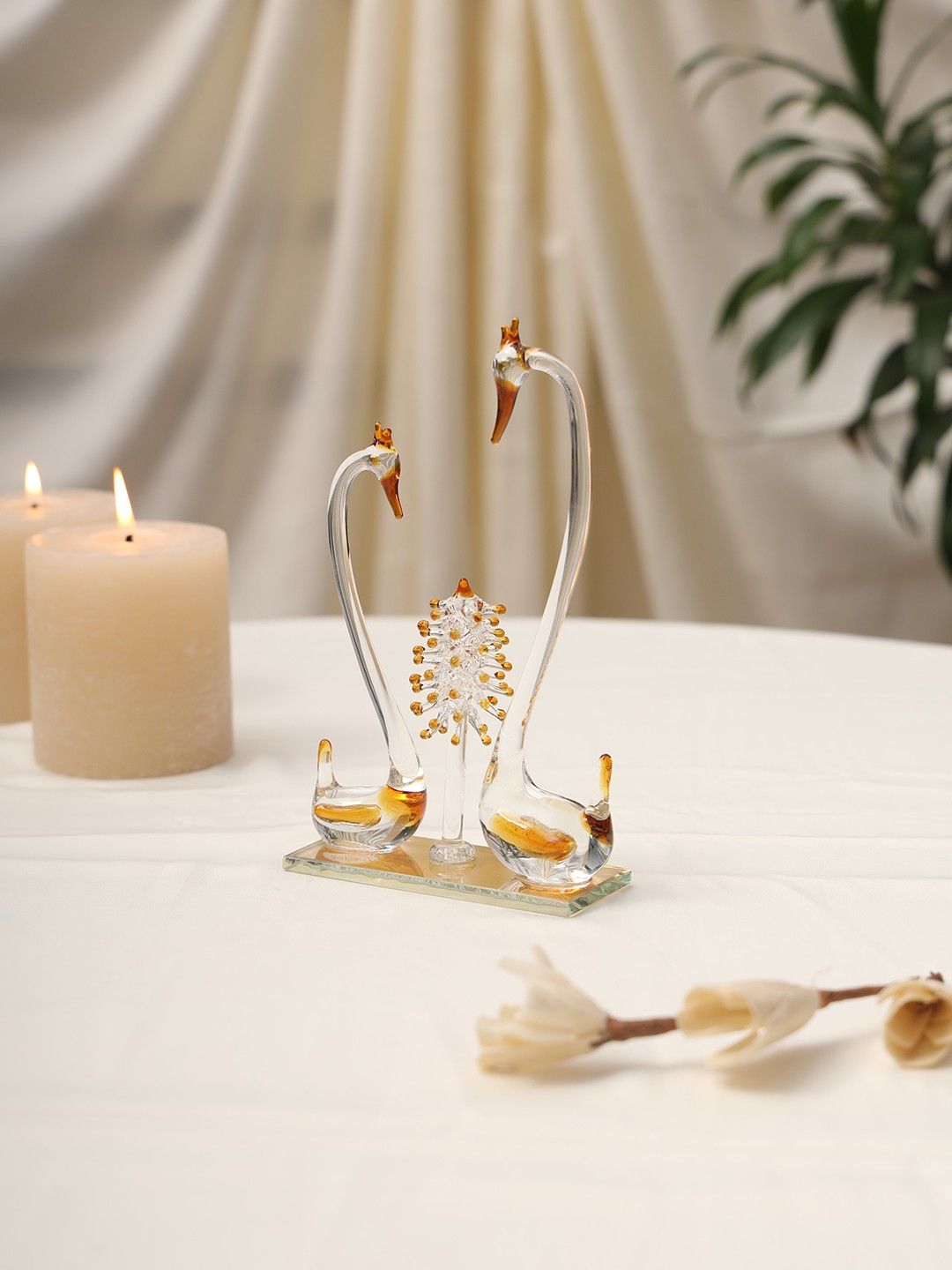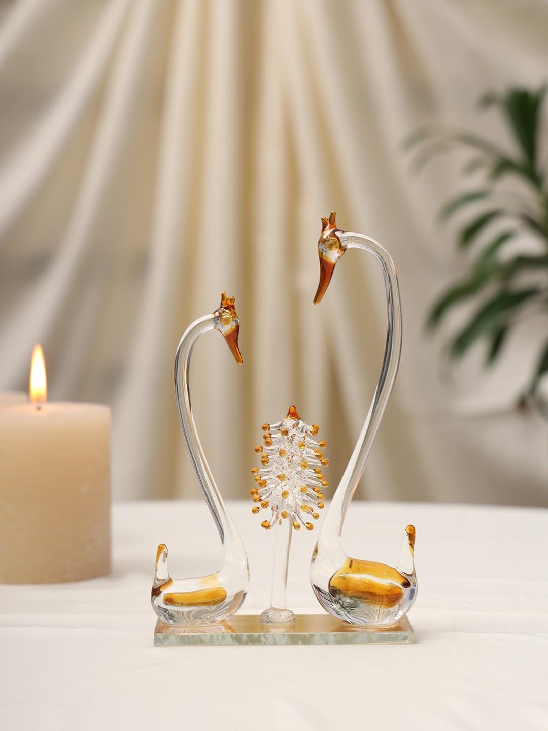 Elegant Glass Swan Couple Showpiece with Crystal Tree | Handcrafted Decorative Figurine for Home & Office Décor