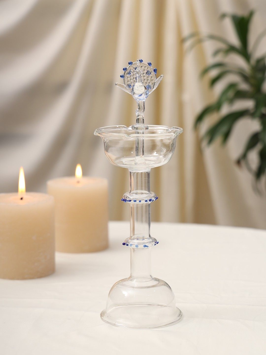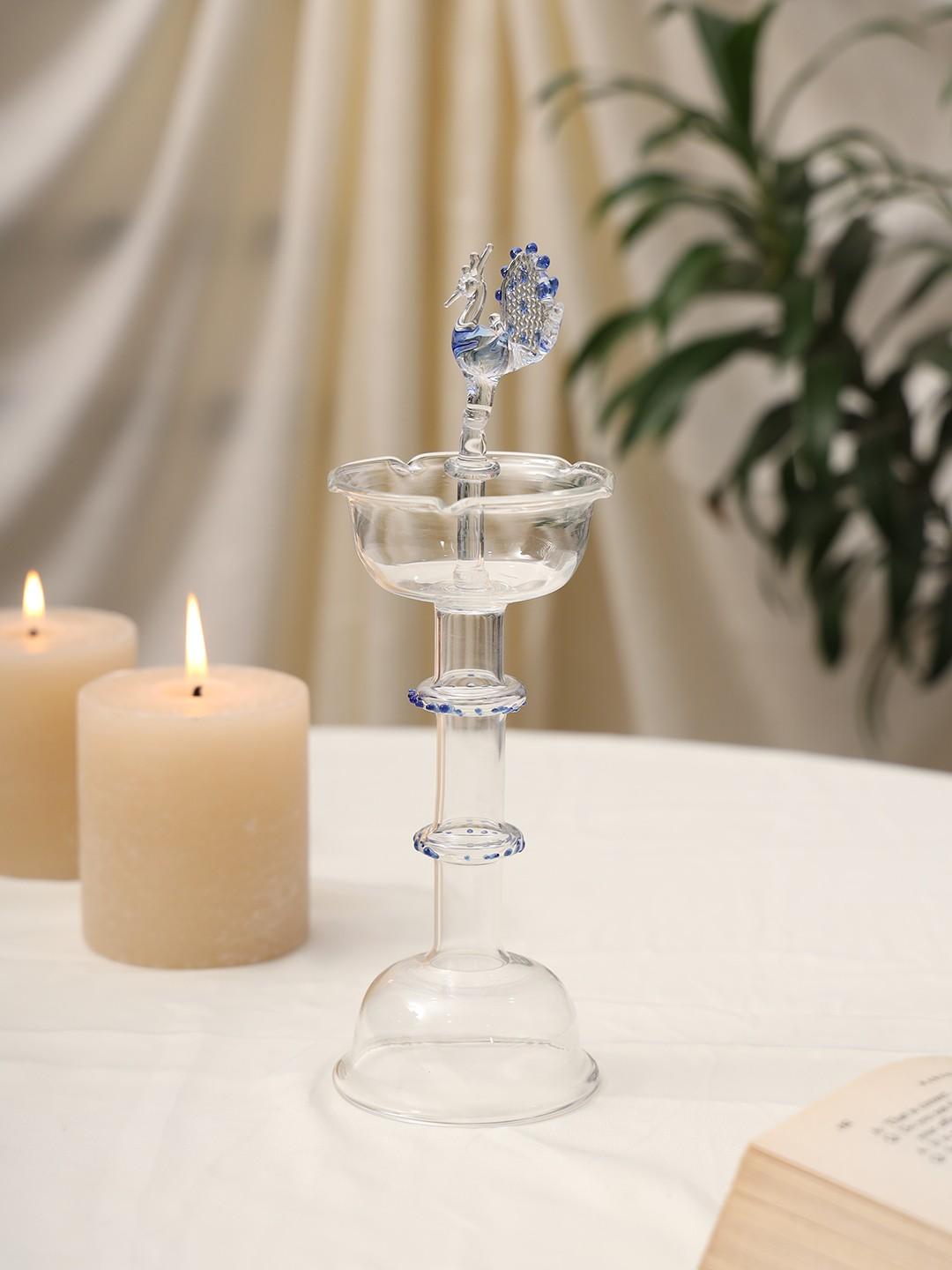 Elegant Glass Peacock Diya Stand | Handcrafted Decorative Oil Lamp for Home Temple & Festive Décor – Sthulas