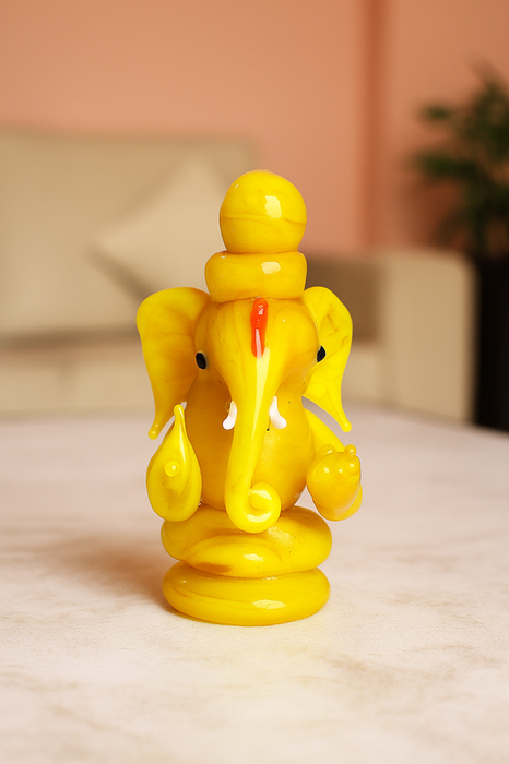 Handcrafted Yellow Glass Ganesha Idol | Elegant Home Temple & Décor Accent by Sthulas