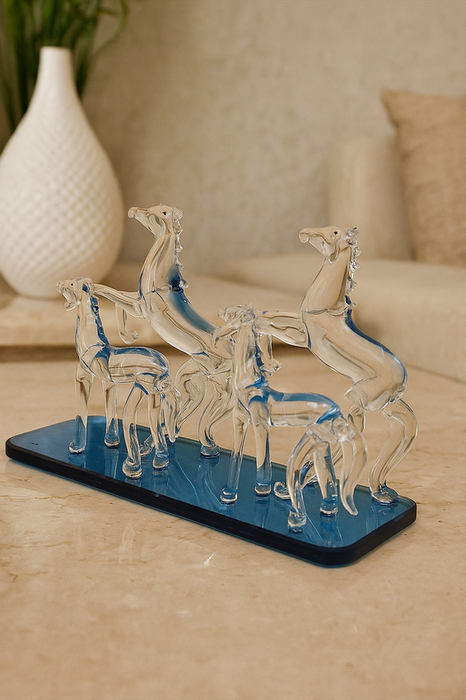 Crystal Glass Horse Family Figurine Set | Elegant Home Décor Accent by Sthulas