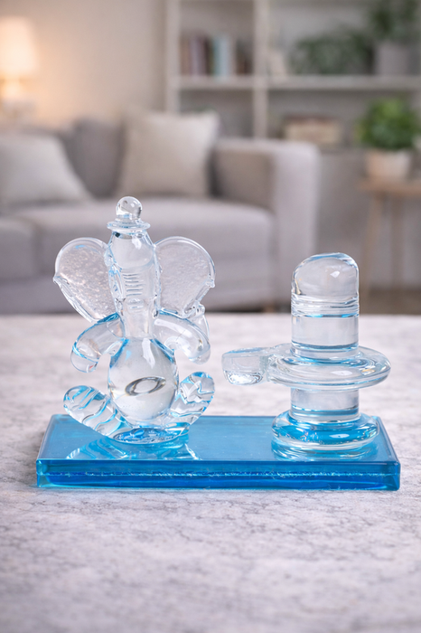 Glass Ganesha and Shivling Idol | Divine Crystal Art Home Décor by Sthulas