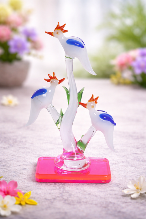 Handcrafted Glass Bird Trio Showpiece | Elegant Crystal Art Décor by Sthulas