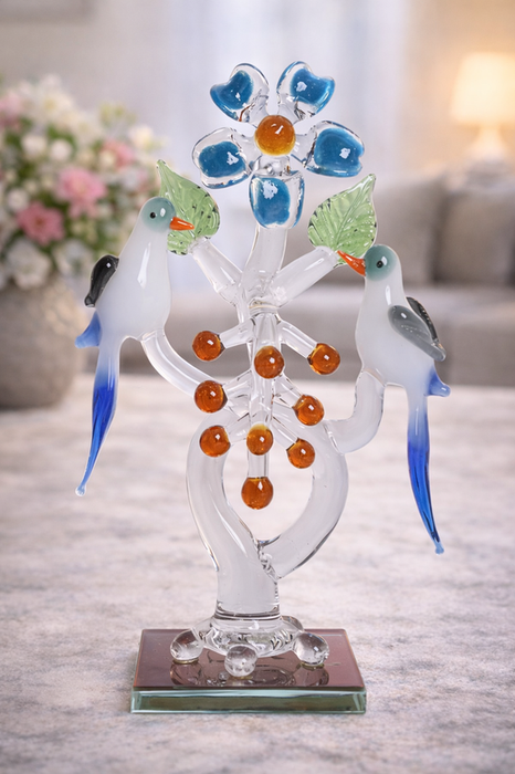 Handcrafted Glass Bird & Flower Showpiece | Elegant Crystal Art Home Décor by Sthulas