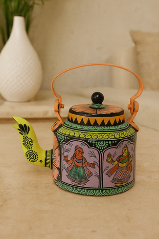 Hand-Painted Decorative Kettle – Rajasthani Folk Art | Sthulas Home Décor Collection