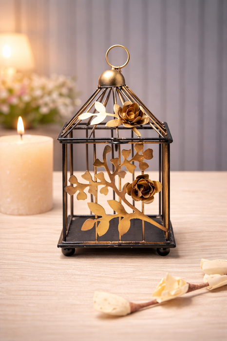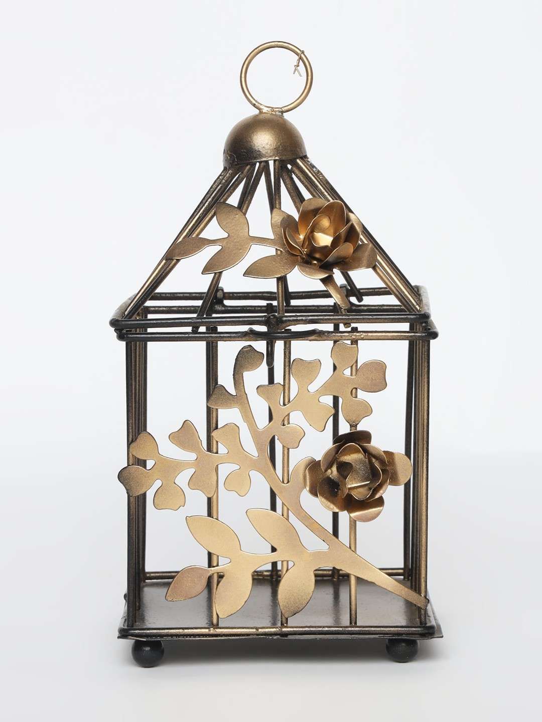 Handcrafted Metal Floral Lantern | Antique Gold Decorative Candle Holder for Home & Festive Décor