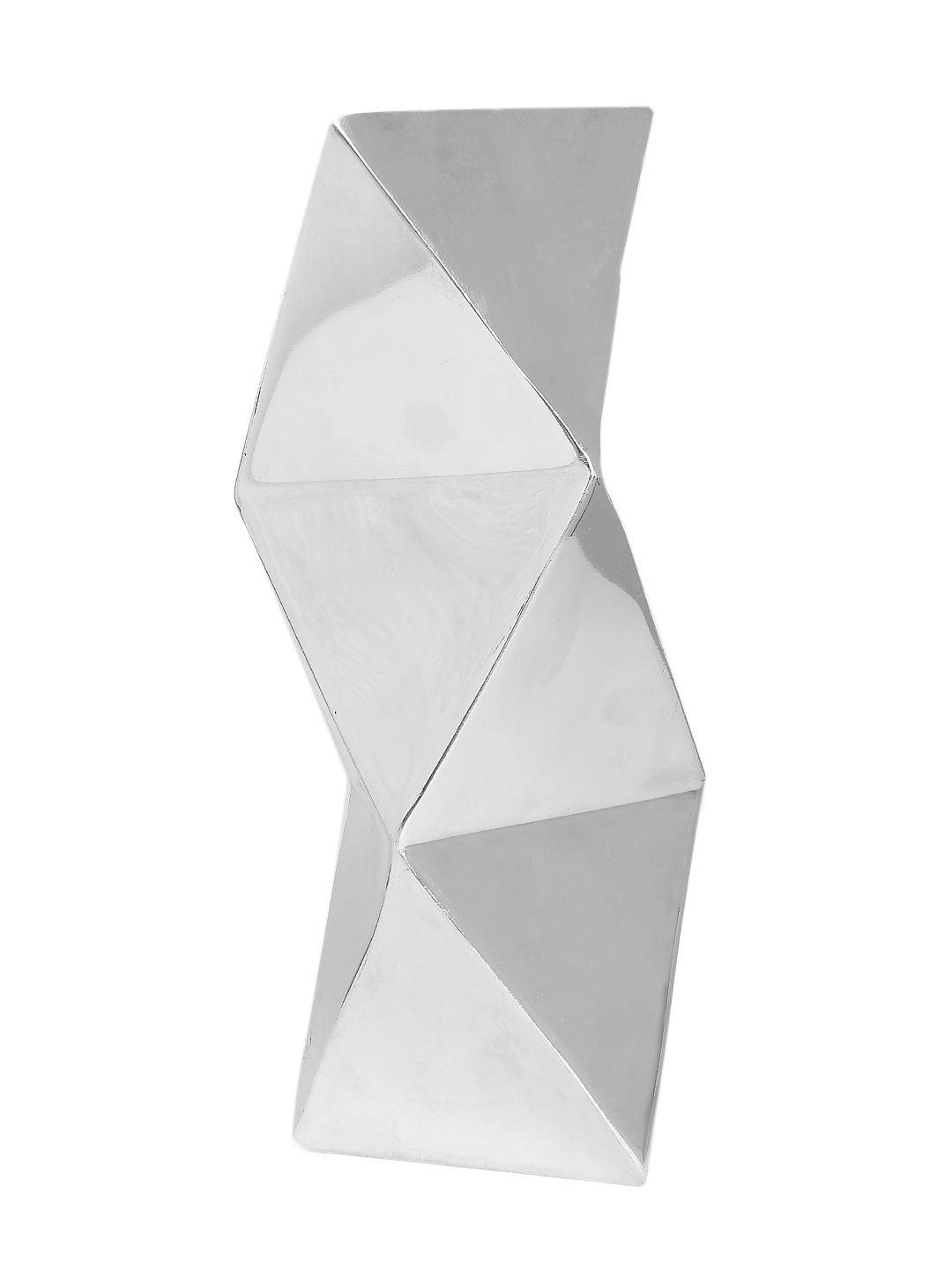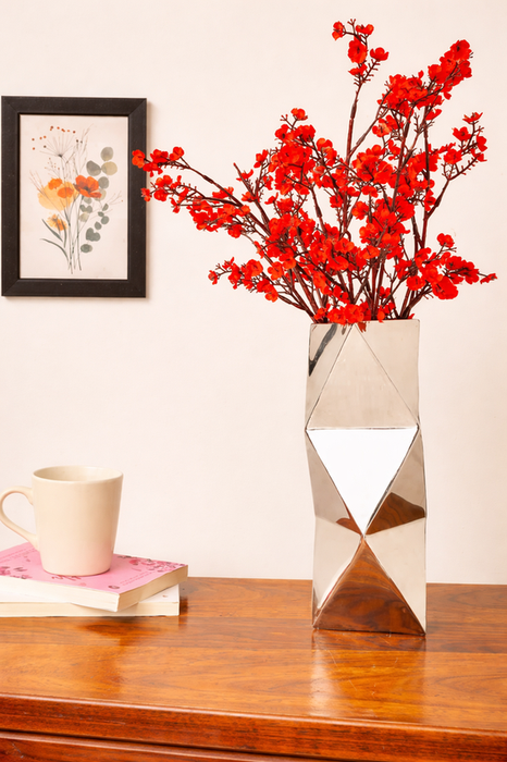 Modern Geometric Silver Metal Vase with Red Artificial Flowers | Luxury Home Décor by Sthulas