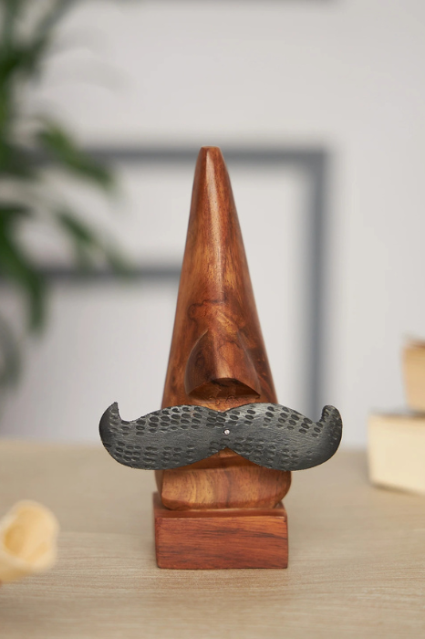 Handcrafted Wooden Nose Eyeglass Holder Stand with Mustache Design | Stylish Spectacle Organizer for Home & Office Decor