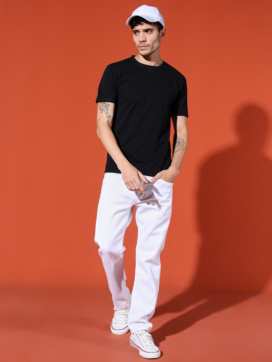 Men Solid Beige Cotton Regular Fit T-Shirt – Minimal Casual Wear
