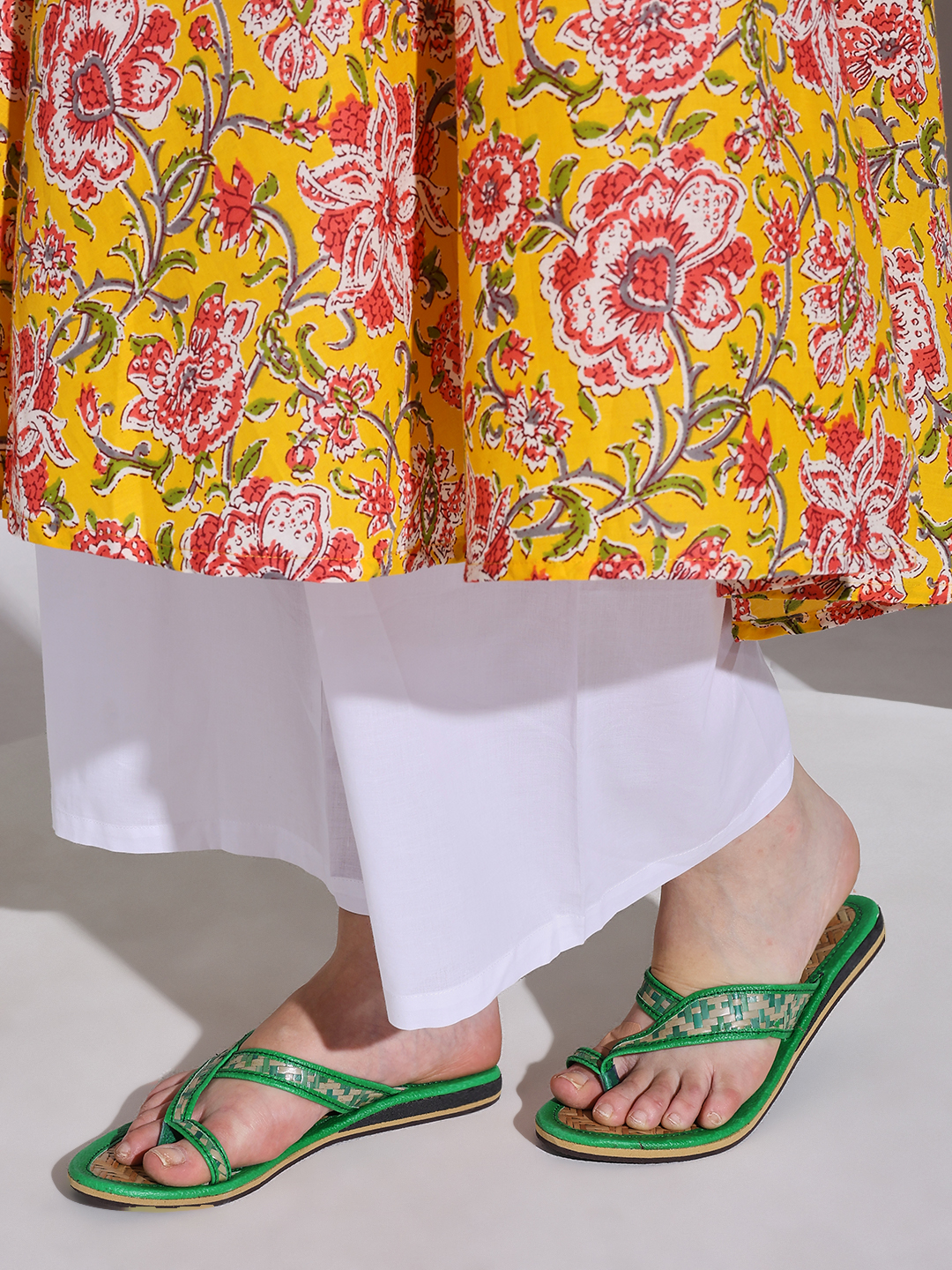 Sthulas Women’s Green Ethnic Woven Slippers | Comfortable Daily Wear Flat Chappals